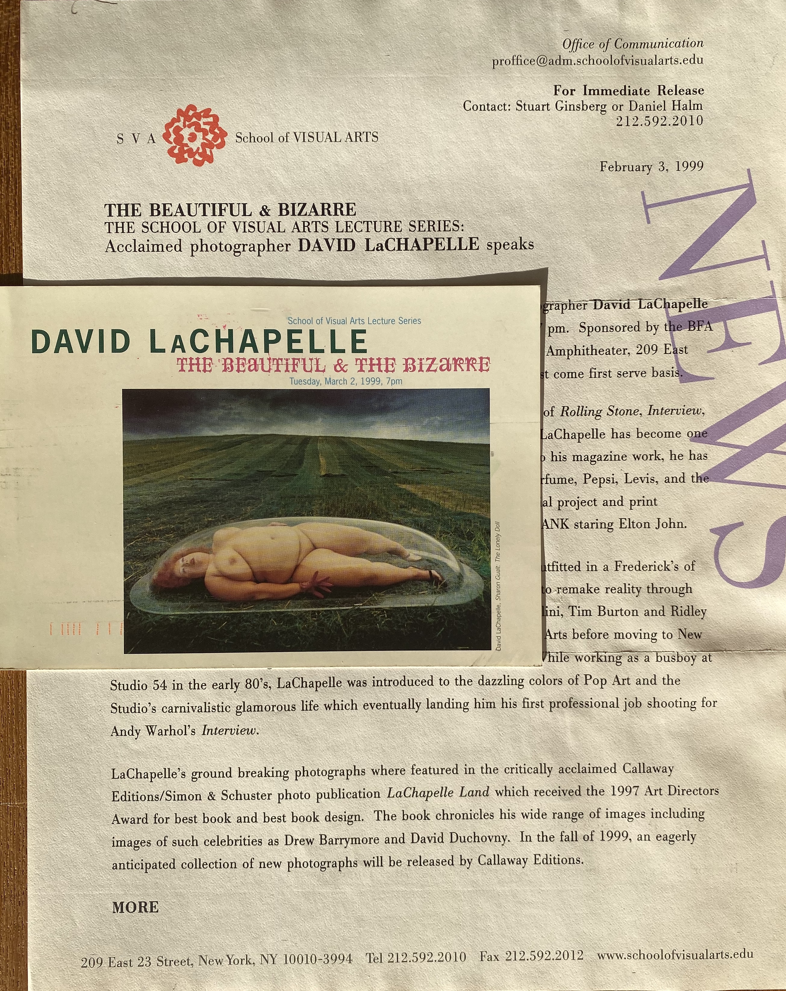 David LaChapelle. The Beautiful & The Bizarre. School of Visual Arts, New York, March 2, 1999