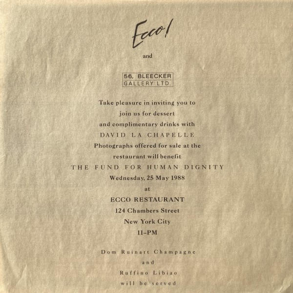 David LaChapelle. Ecco Restaurant, New York, 25 May 1988
