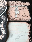 7-panel silkscreen leporello (=14 pages) on card stock with front panel flap, stapled