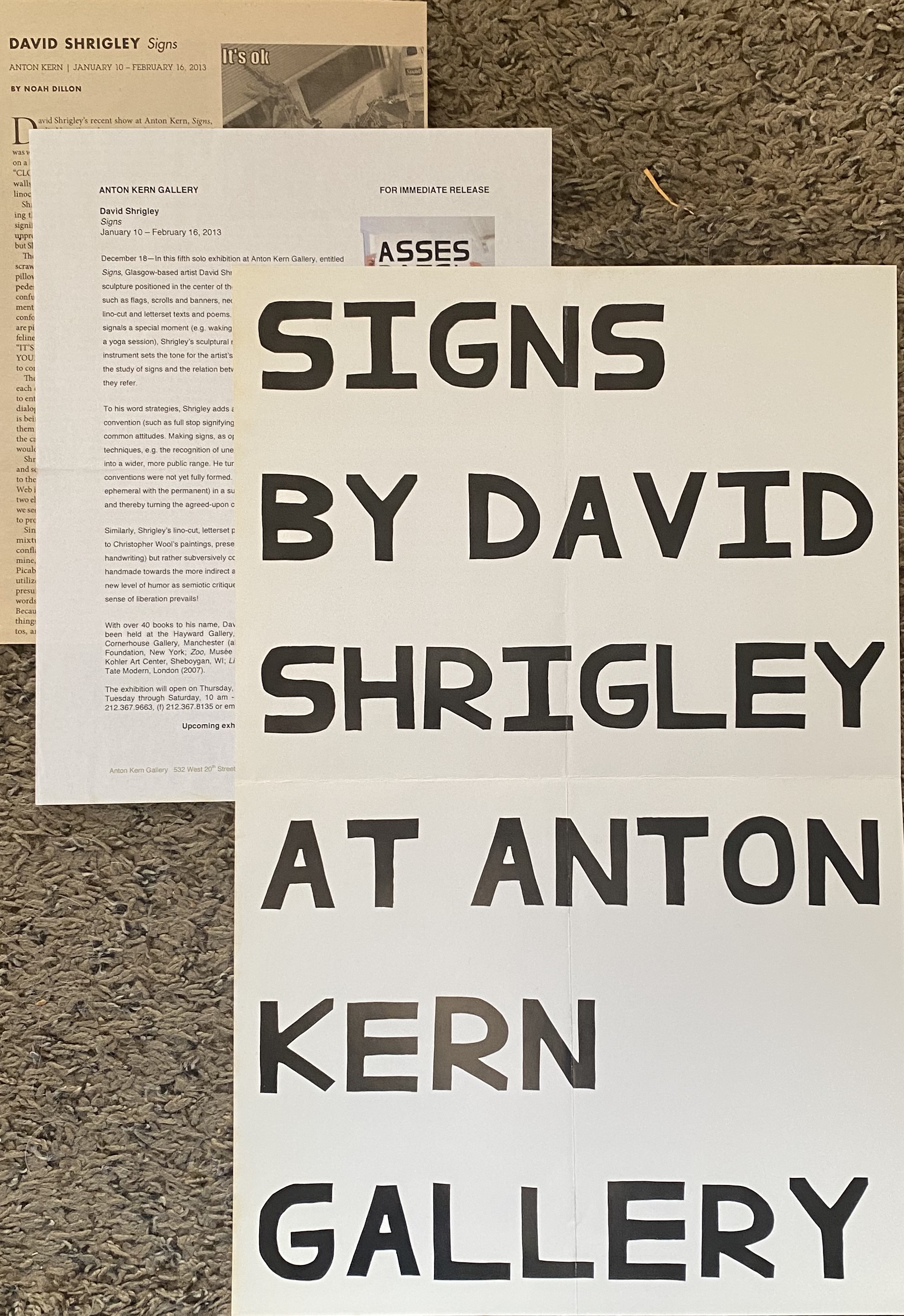 (David Shrigley). Sign by David Shrigley at Anton Kern Gallery. January 10 – February 16, 2013