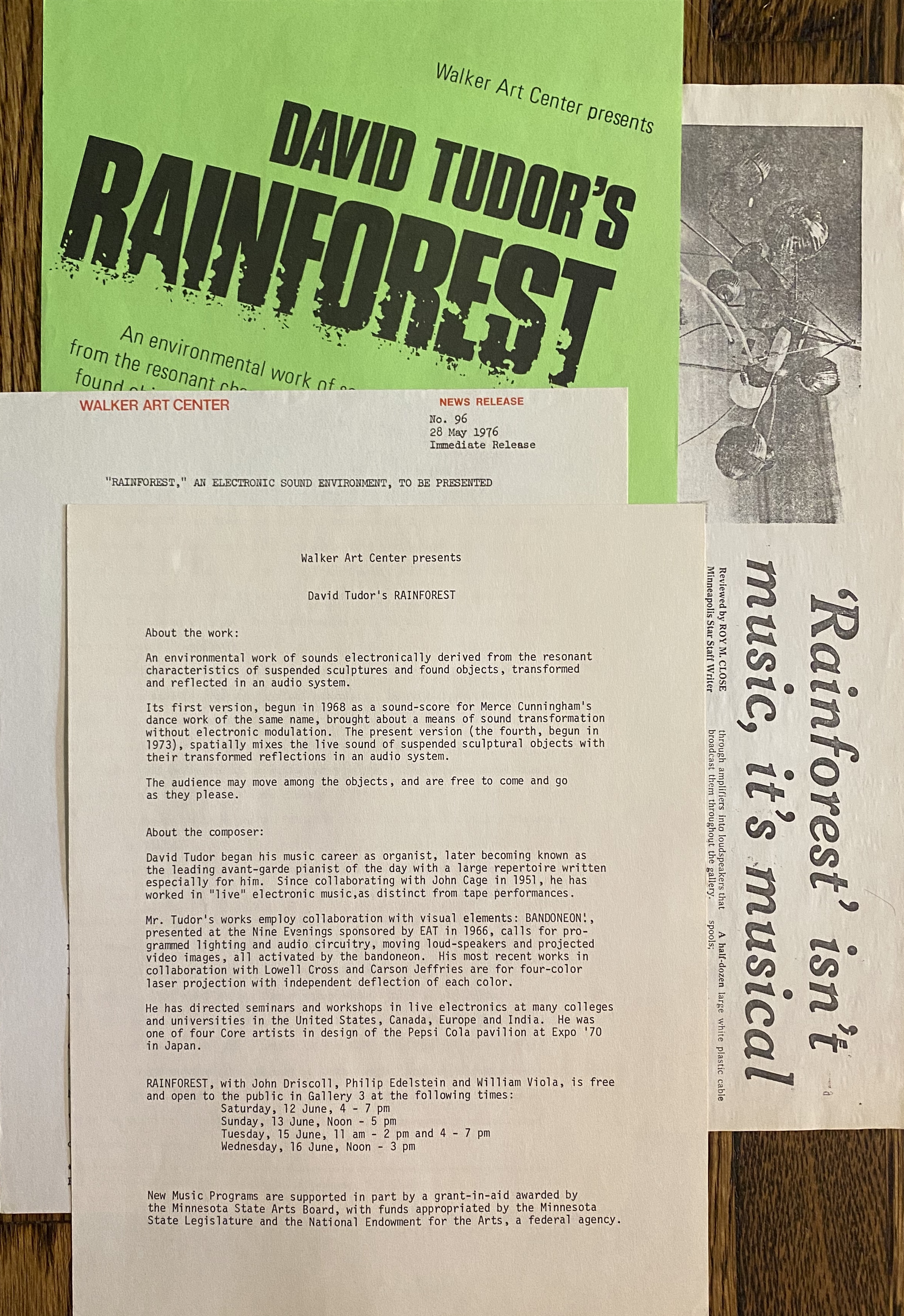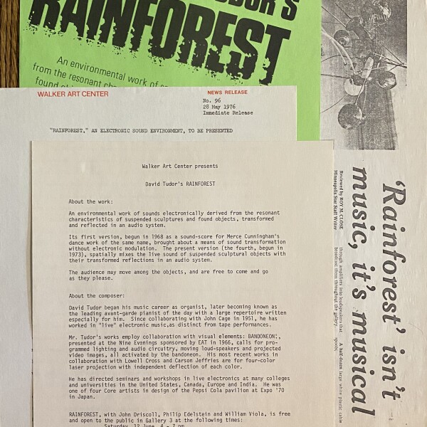 – Walker Art Center presents David Tudor’s RAINFOREST. 1 page