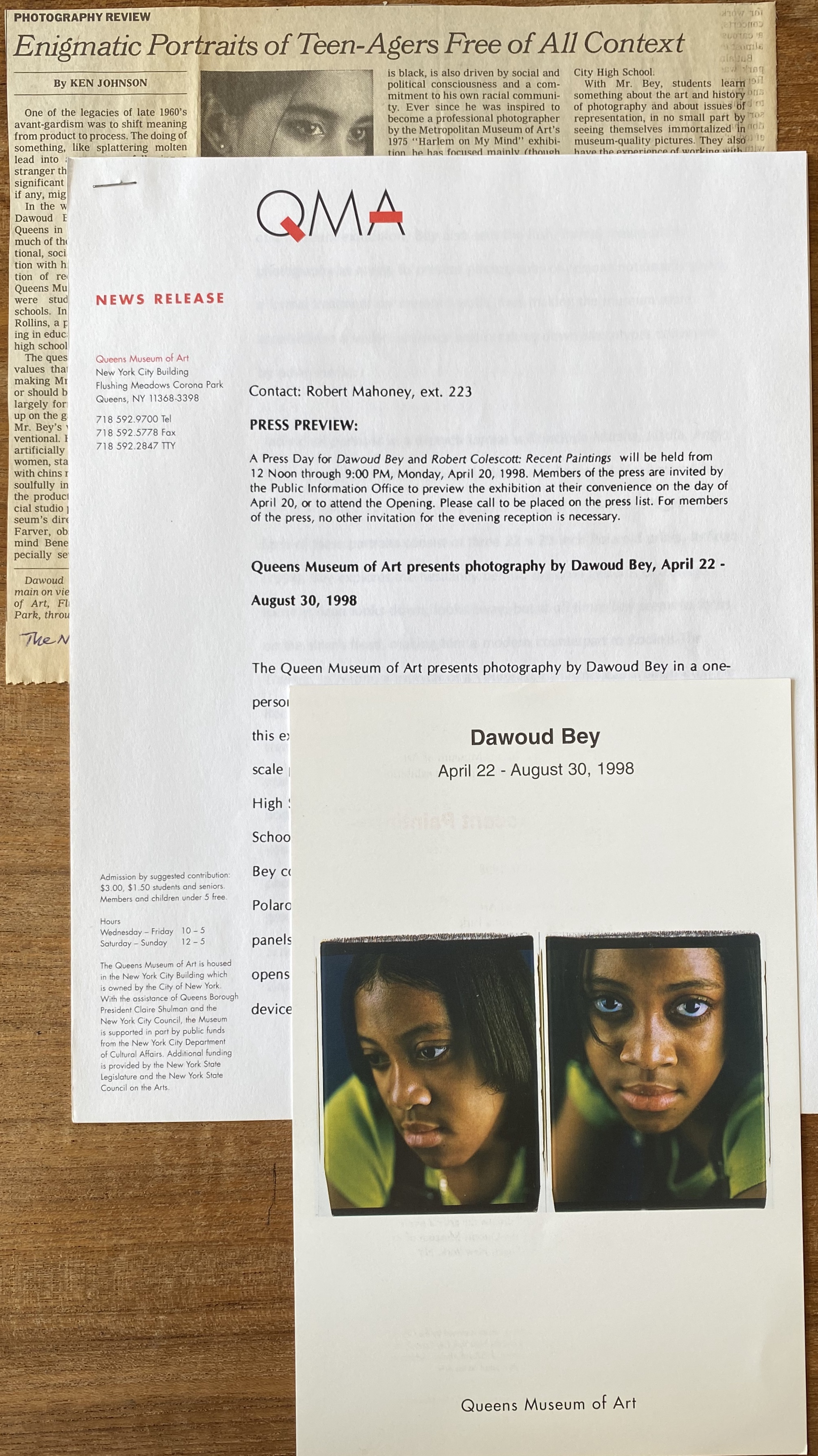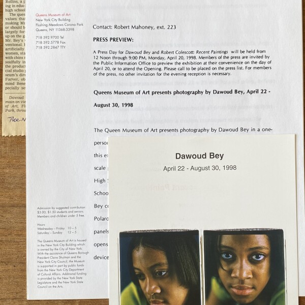 (Dawoud Bey). Dawoud Bey. Queens Museum of Art, Queens, New York, April 20, 1998
