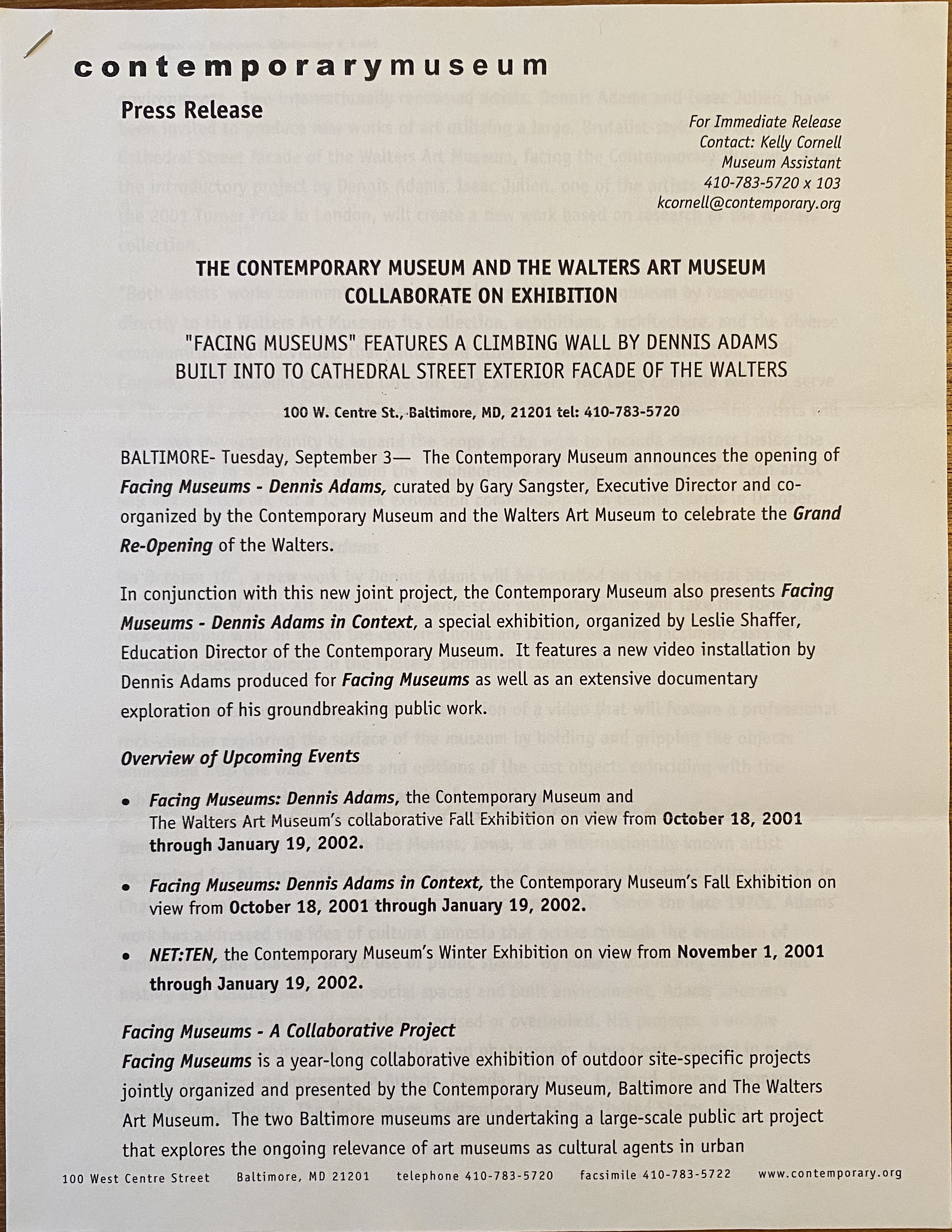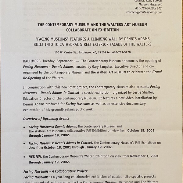 4-page (=sheets) press release, Contemporary Museum, September 3, [2001]