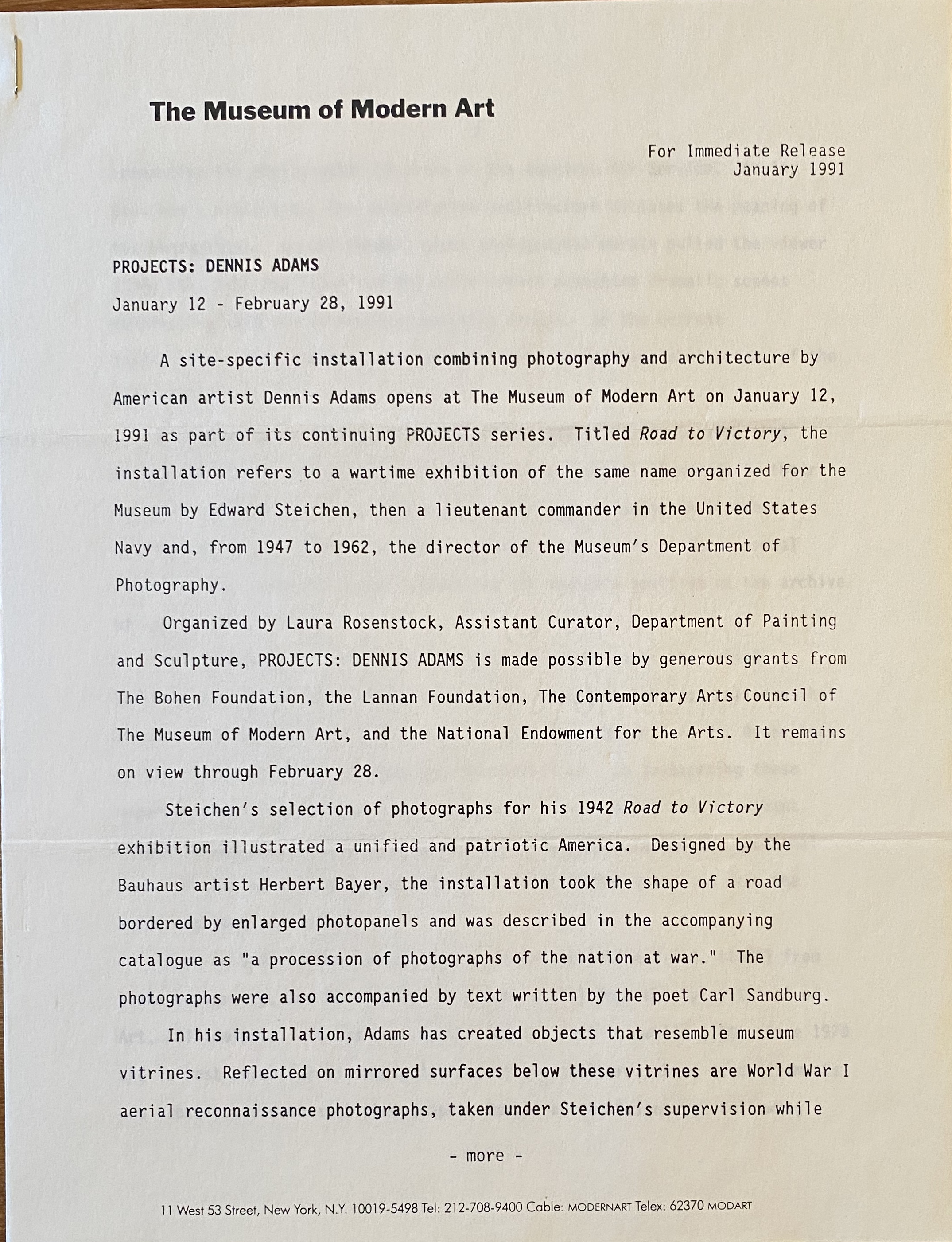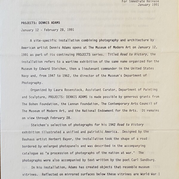 (Dennis Adams). Projects: Dennis Adams. The Museum of Modern Art, New York, January 12 – February 28, 1991