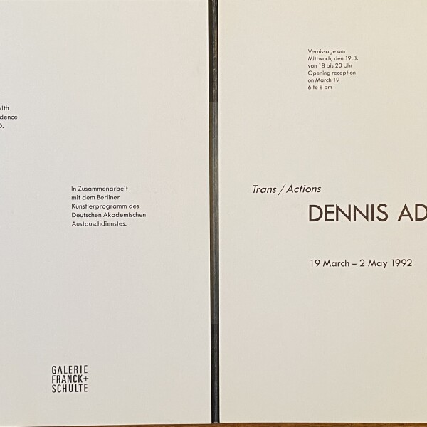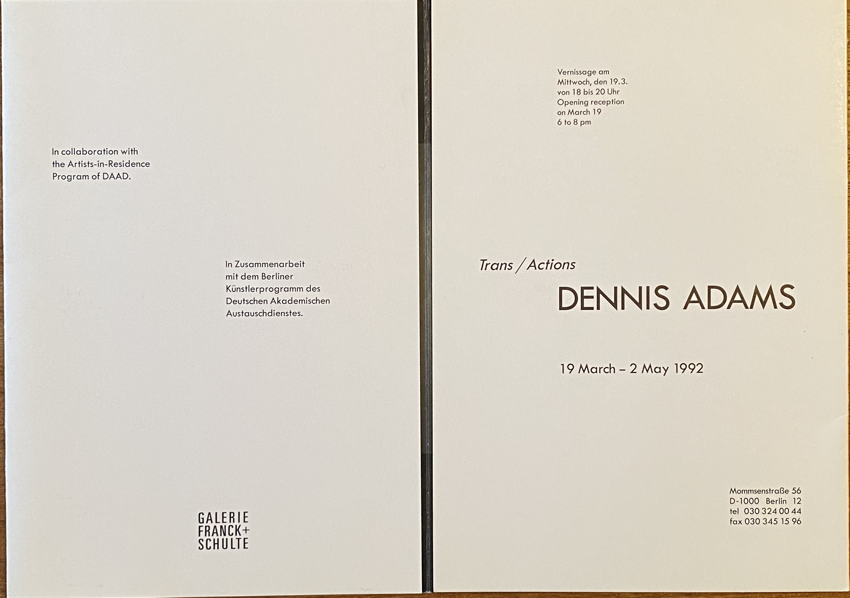 Dennis Adams. Trans/Actions. Galerie Franck + Schulte, Berlin, 19 March – 2 May 1992