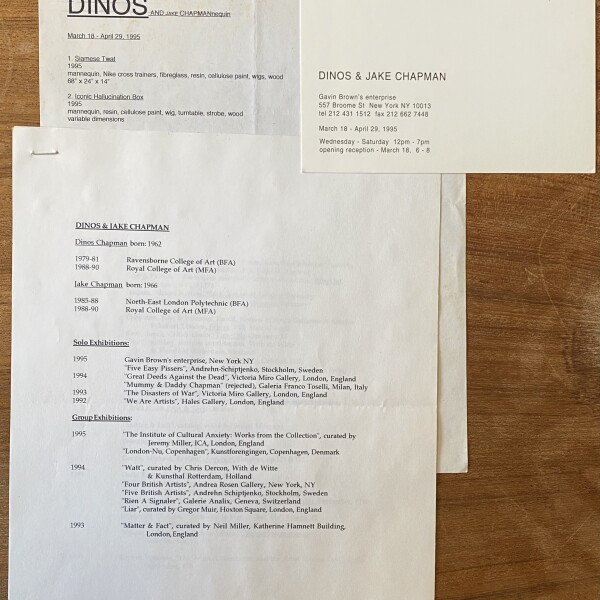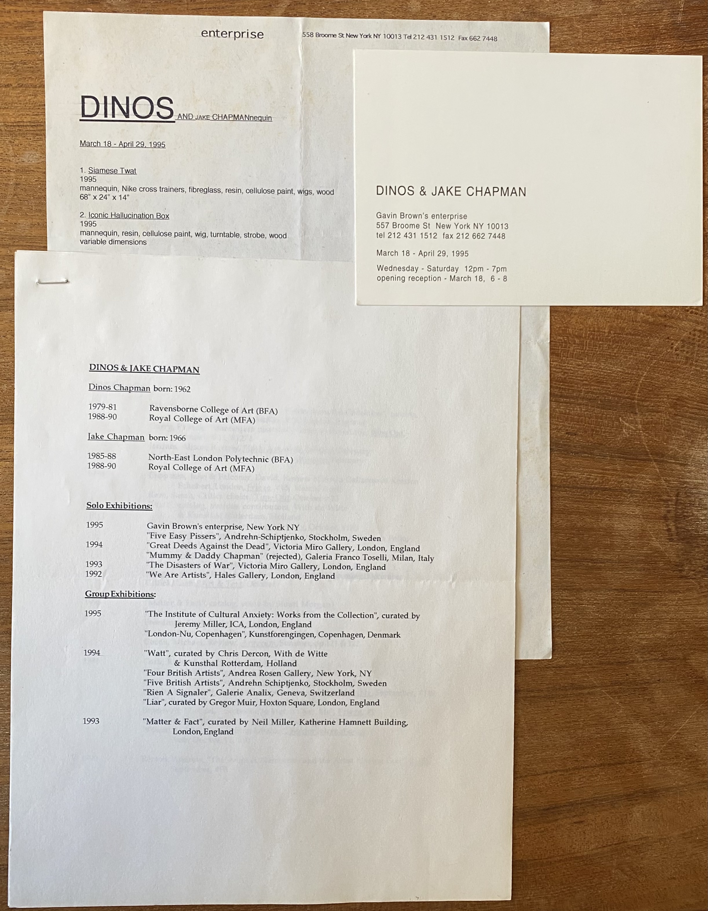 (Dinos & Jake Chapman). Dinos & Jake Chapman. Gavin Brown’s enterprise, New York, March 18 – April 29, 1995.