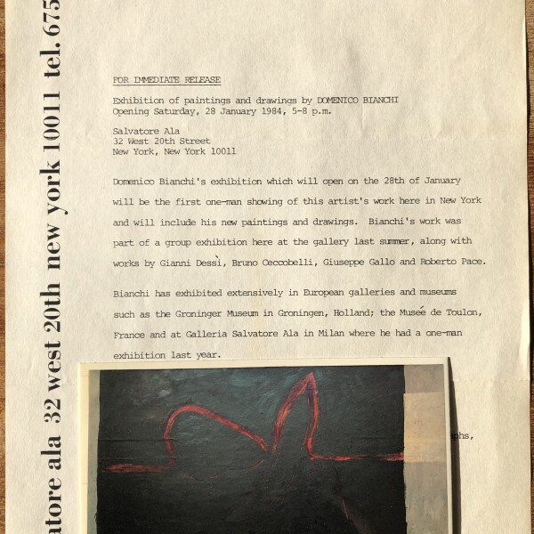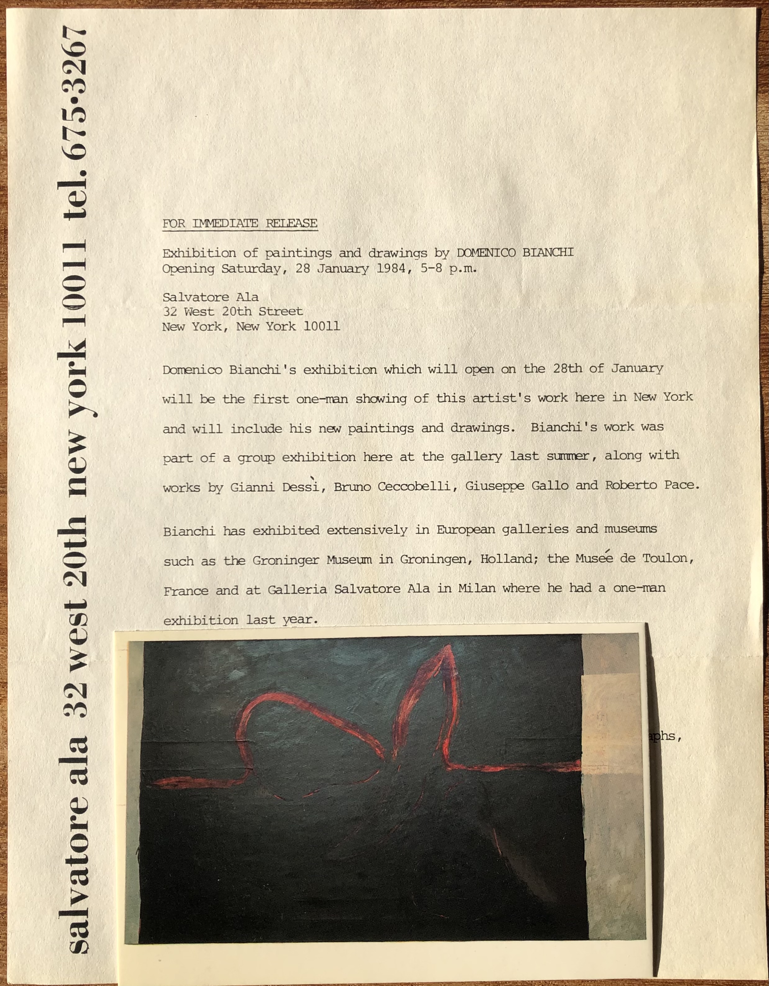(Domenico Bianchi). Domenico Bianchi. Salvatore Ala, New York, 28 January 1984
