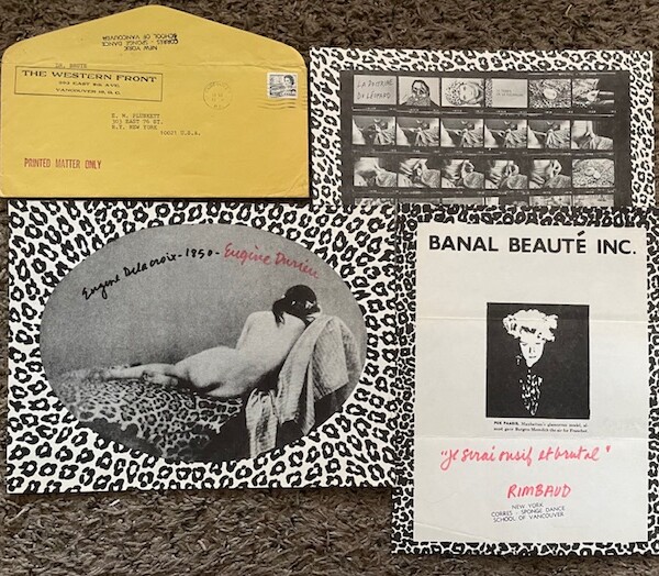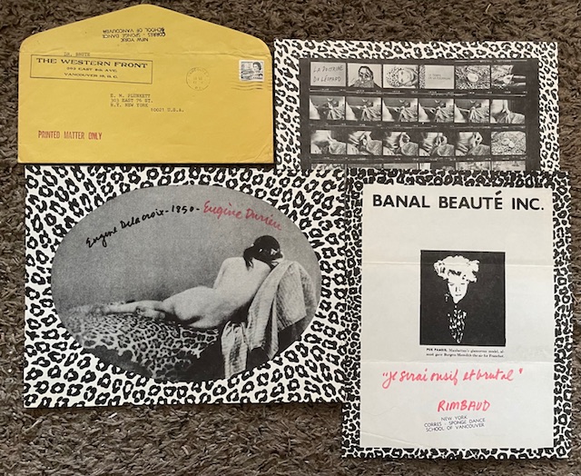 -The Western Front, Vancouver, B.C., mailing envelope. “New York/Corres-sponge Dance / School of Vancouver” stamped on V flap