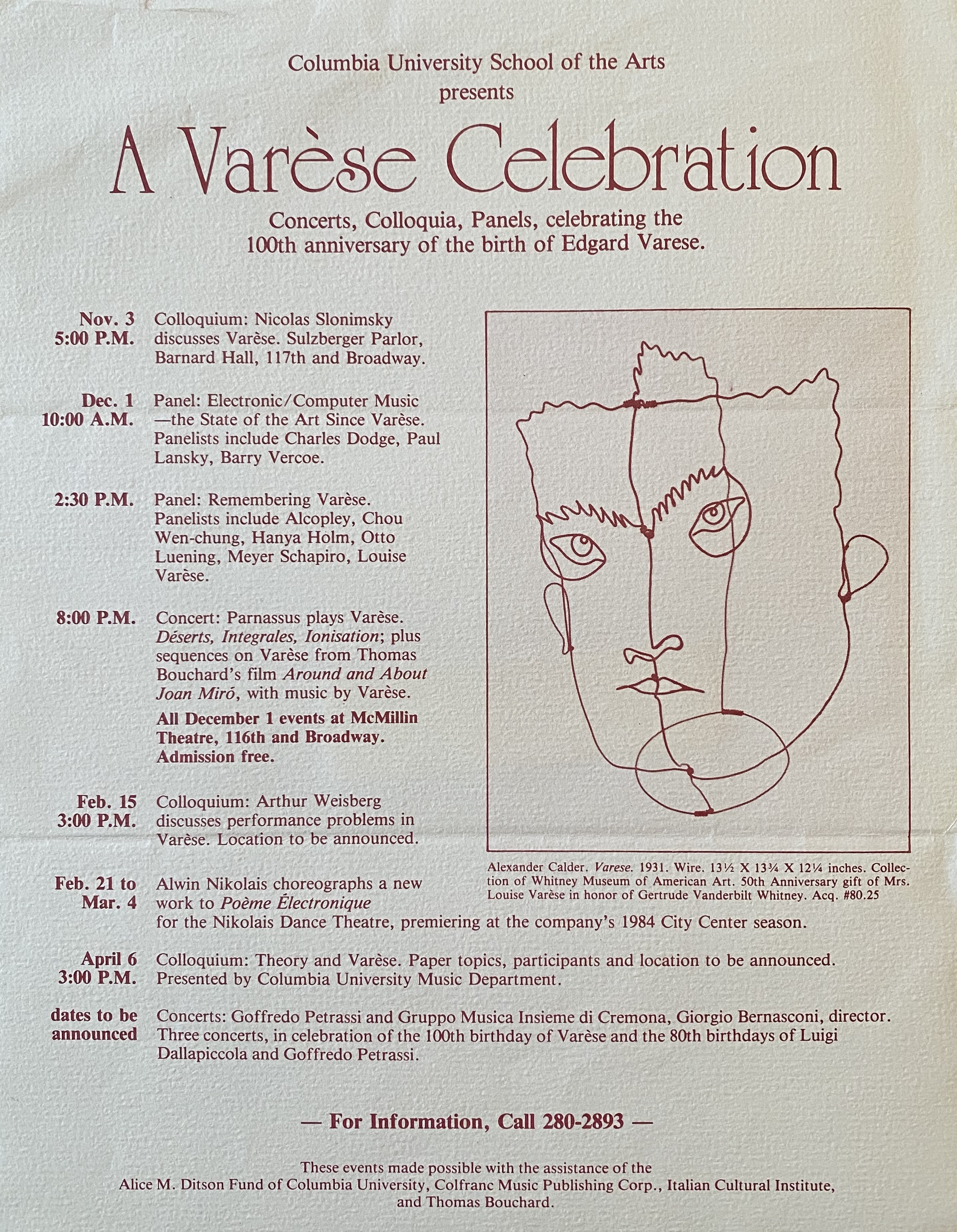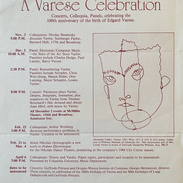 (Edgar Varèse). A Varèse Celebration. Various locations, New York City, between November 3, [1983] – April 6, [1984]