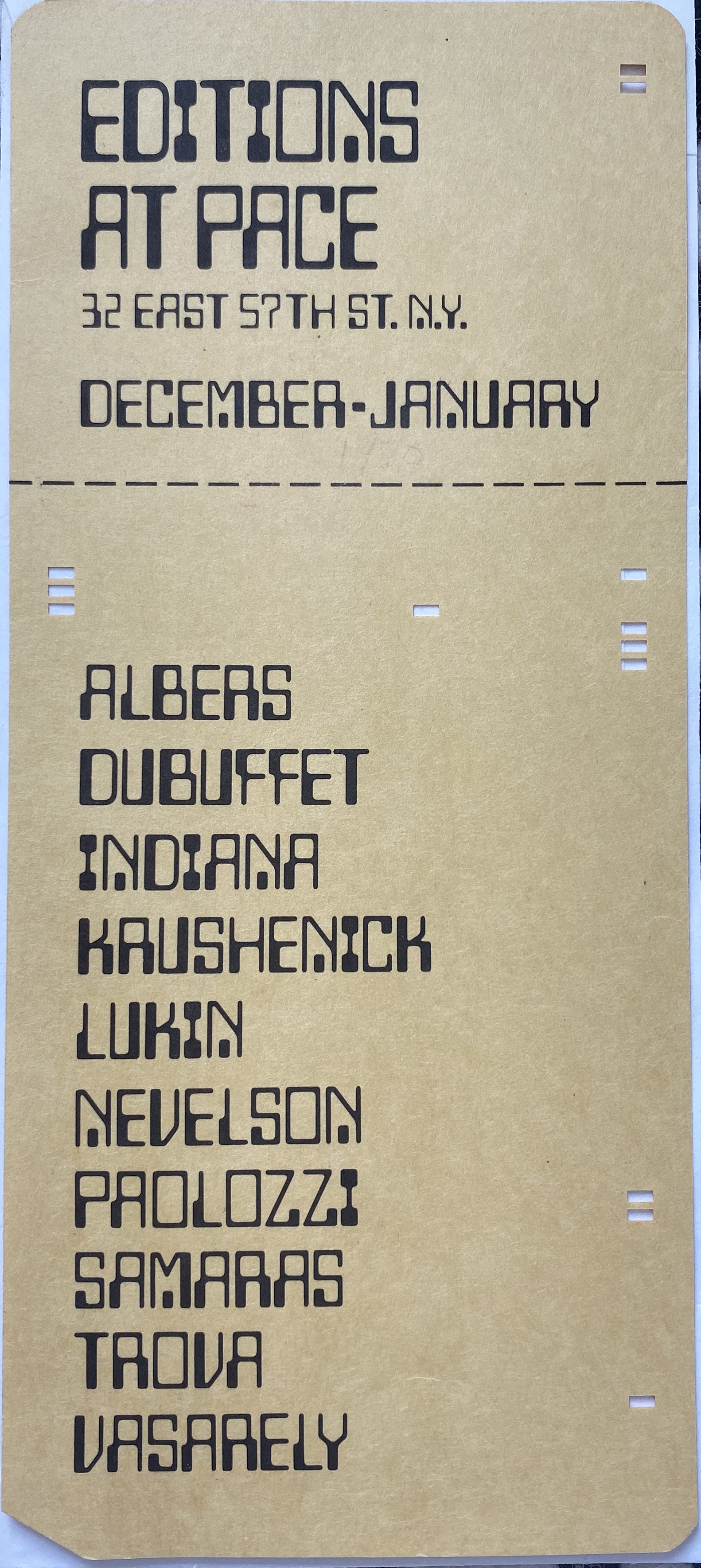 Editions at Pace. [Pace Gallery] New York, December [1970] – January [1971]