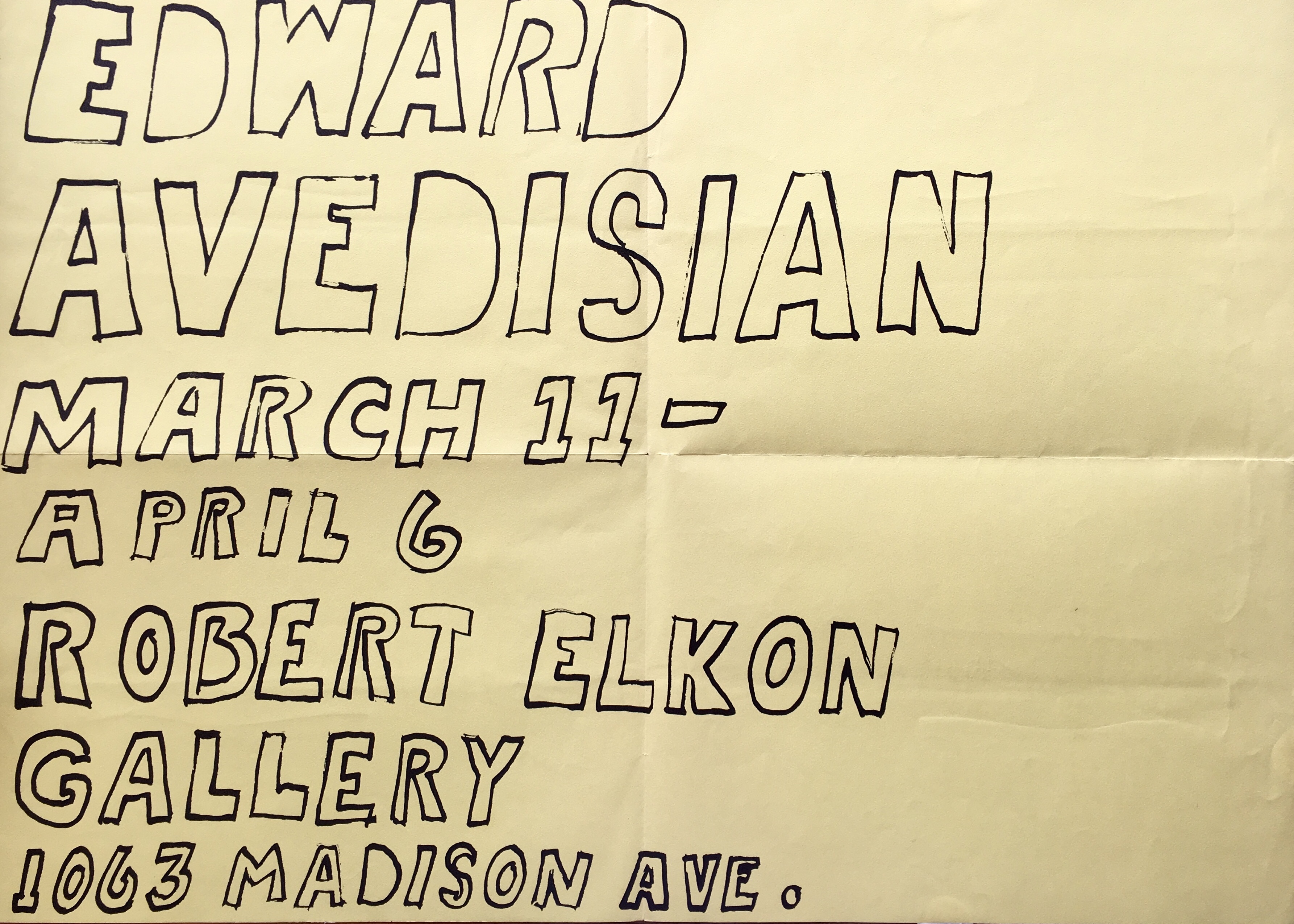 (Edward Avedisian). Edward Avedisian. Robert Elkon Gallery, New York, March 11 – April 6, [1967]