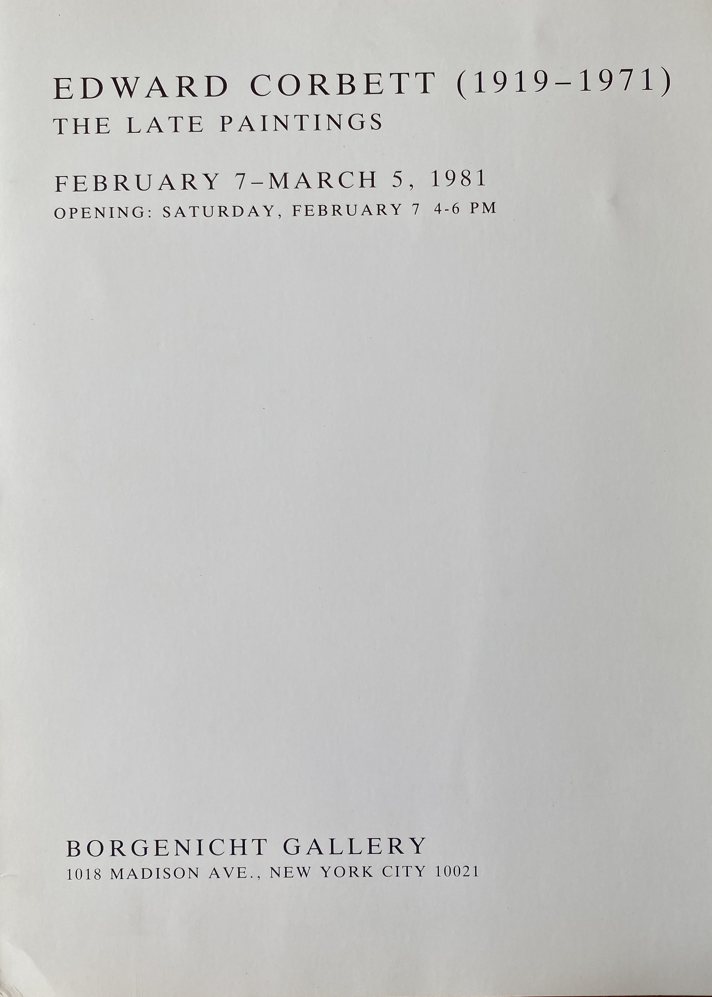 (Edward Corbett). Edward Corbett (1919 – 1971). The Late Paintings. Borgenicht Gallery, New York, February 7 – March 5, 1981