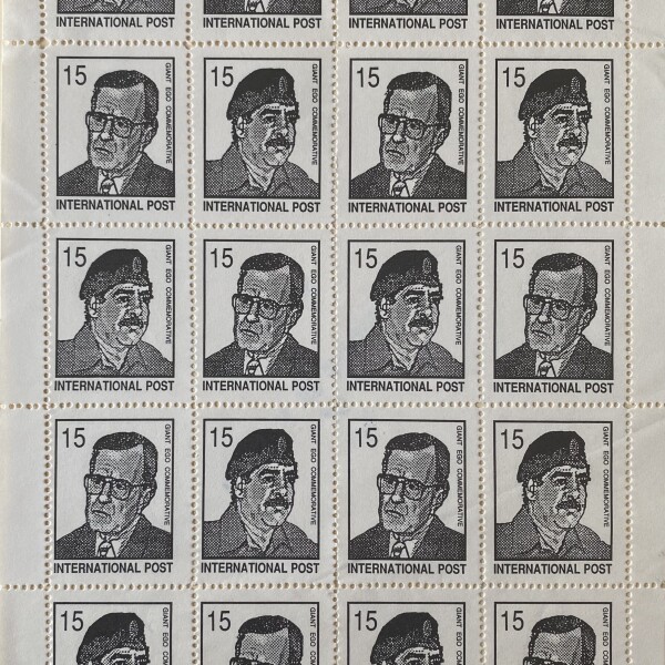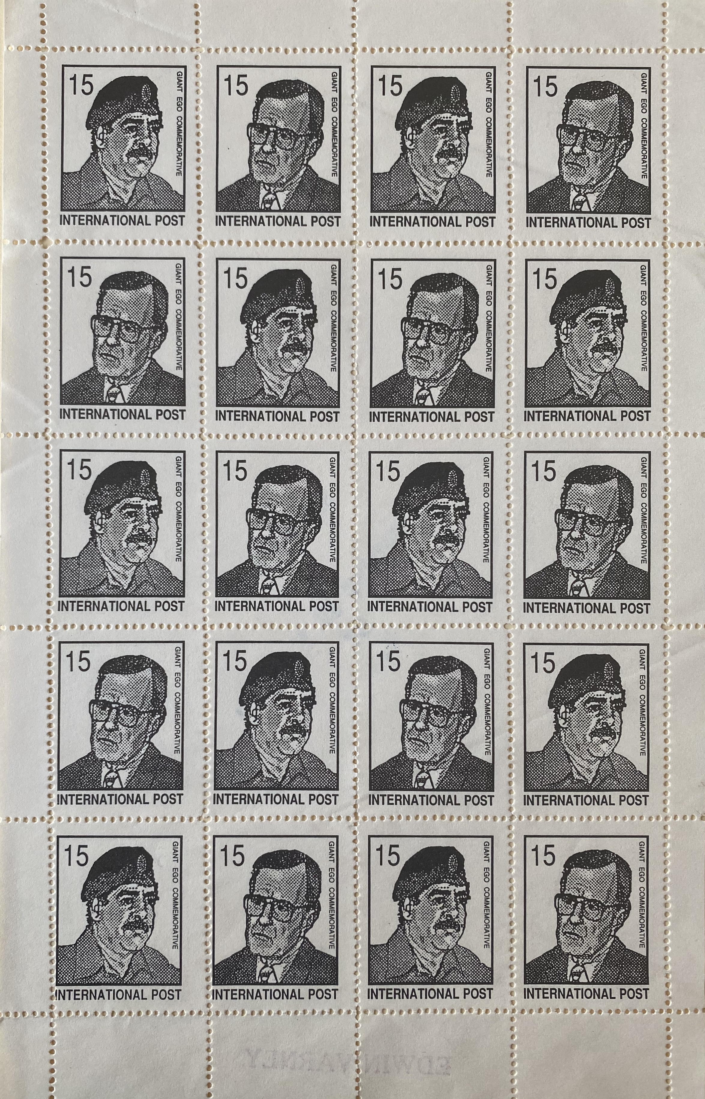 Edwin Varney. Giant Ego commemorative sheet of 20 gummed artist’s stamps. Not dated