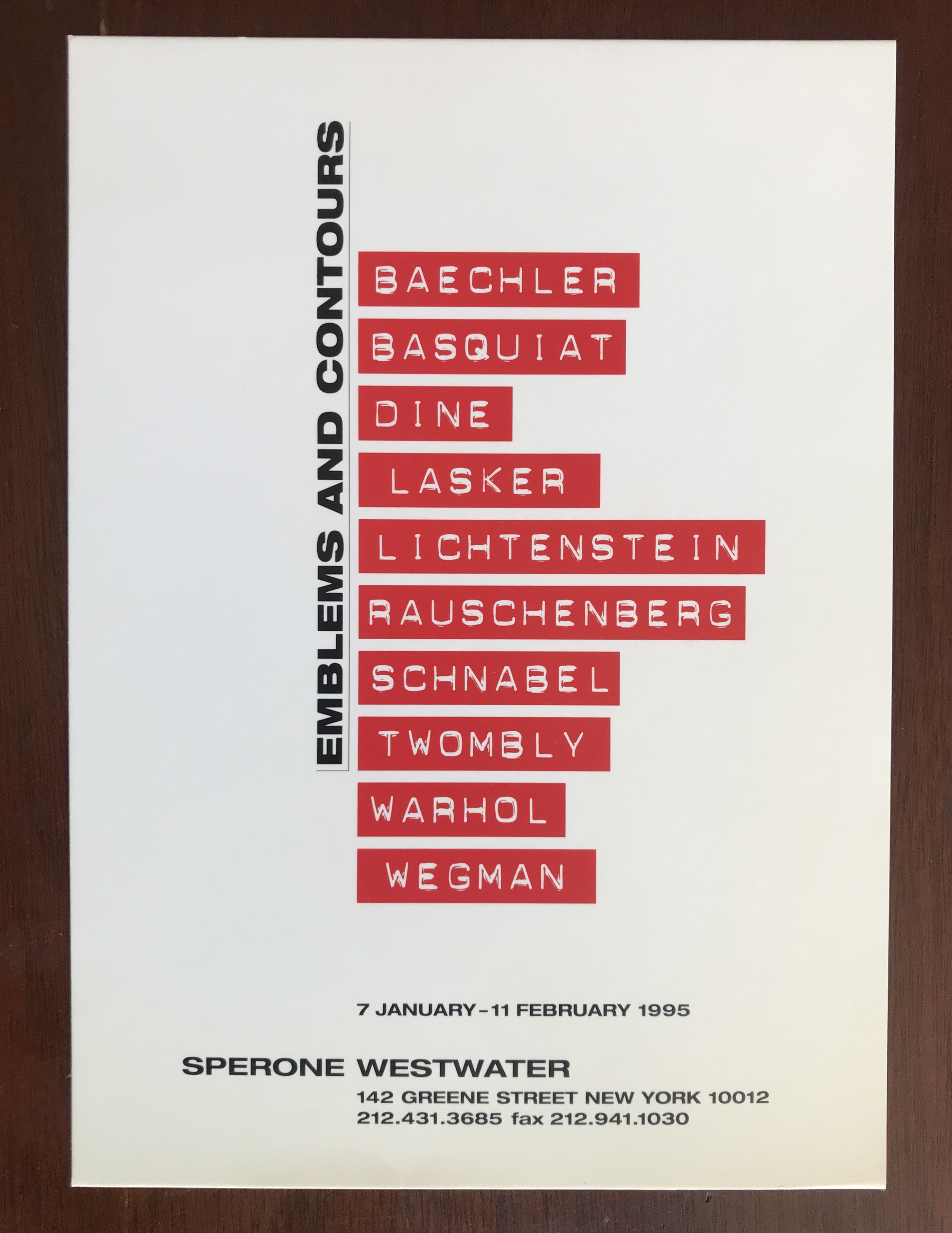 Emblems and Contours. Sperone Westwater, New York, 7 January- 11 February 1995