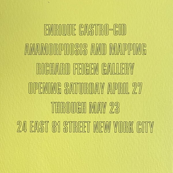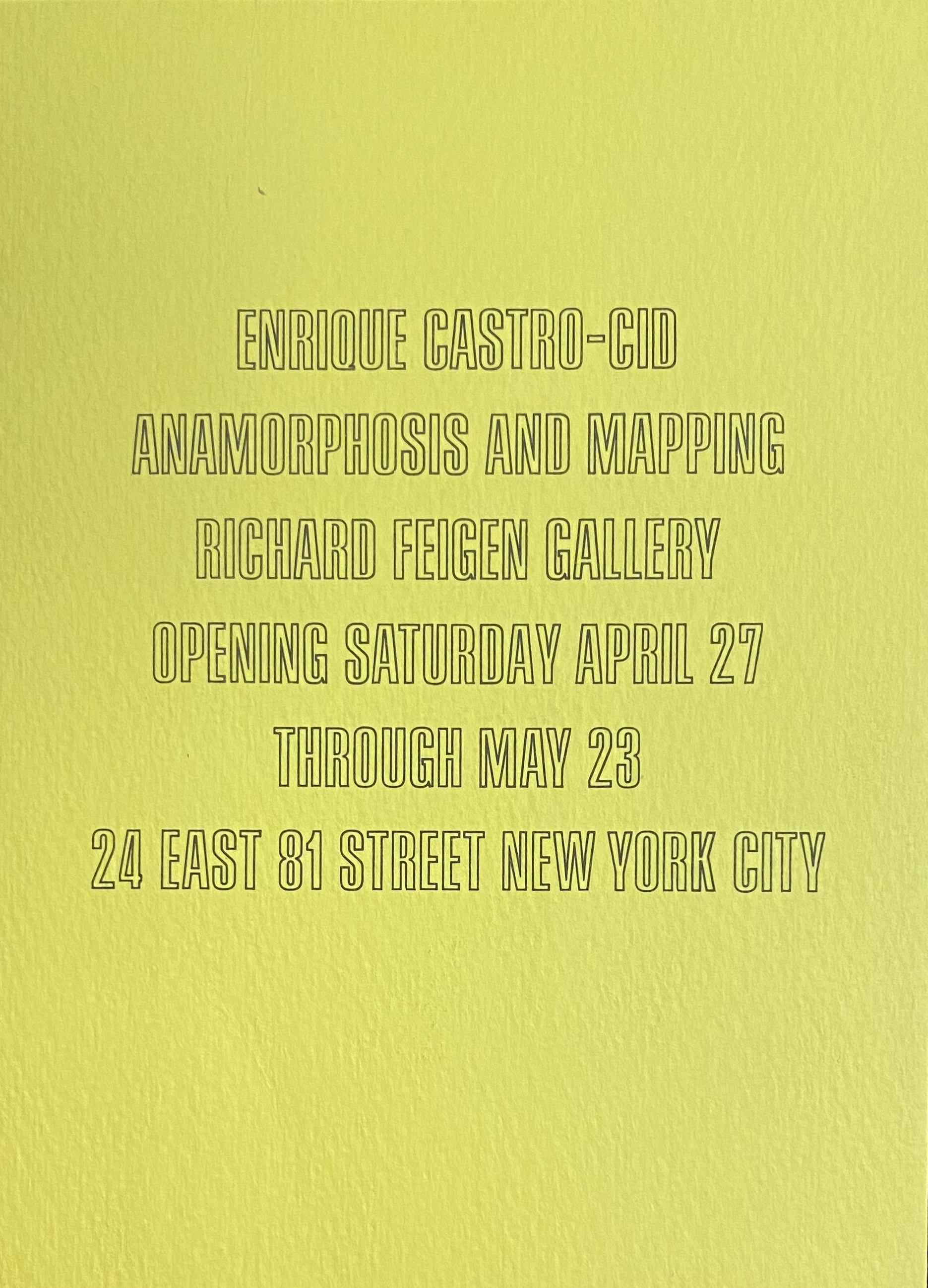 Enrique Castro-Cid. Anamorphosis and mapping. Richard Feigen Gallery, New York, April 27 – May 23, [1968]