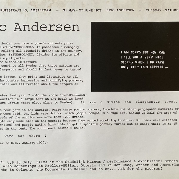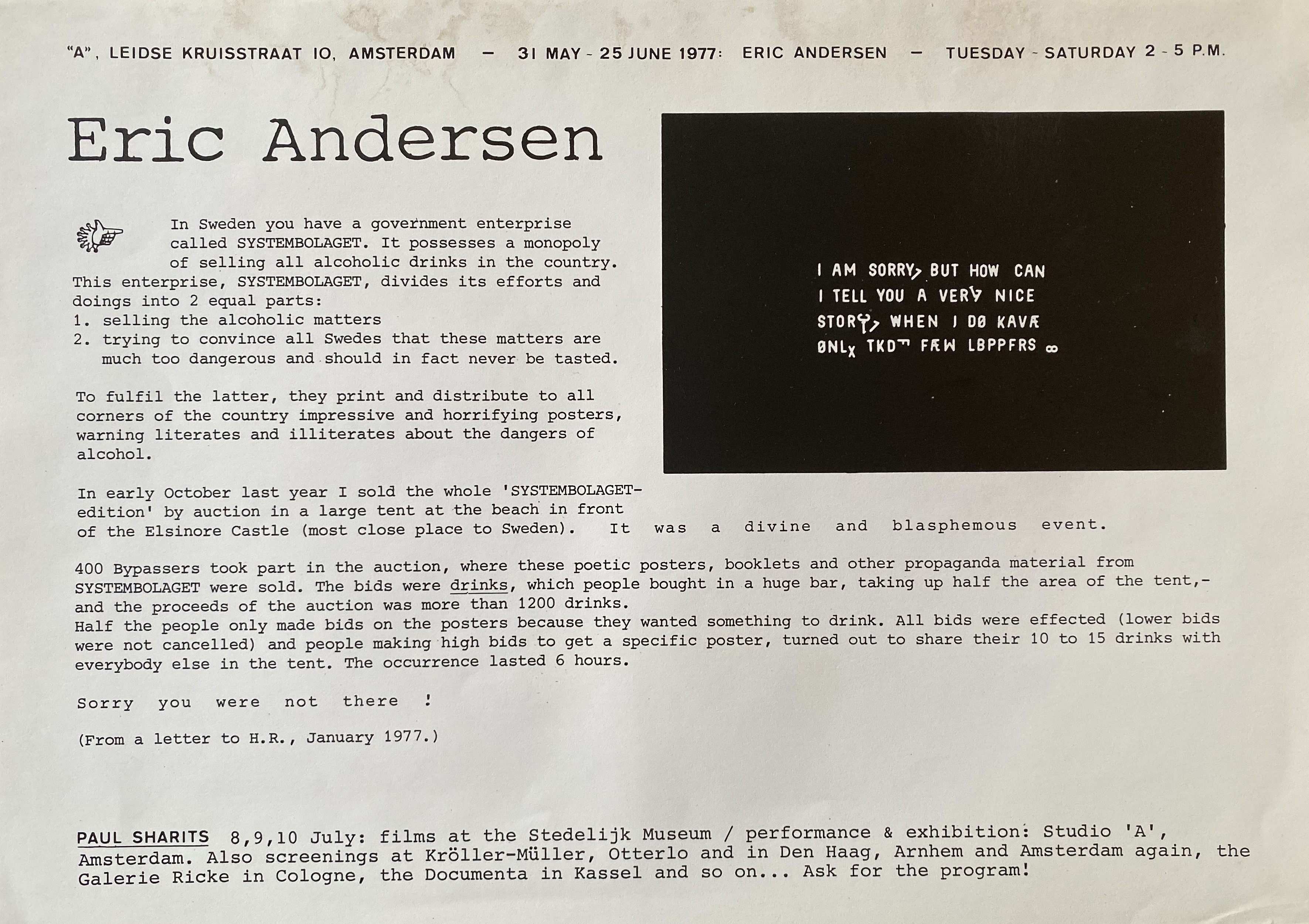 (Eric Andersen). Eric Andersen. “A”, Amsterdam, 31 May – 25 June 1977