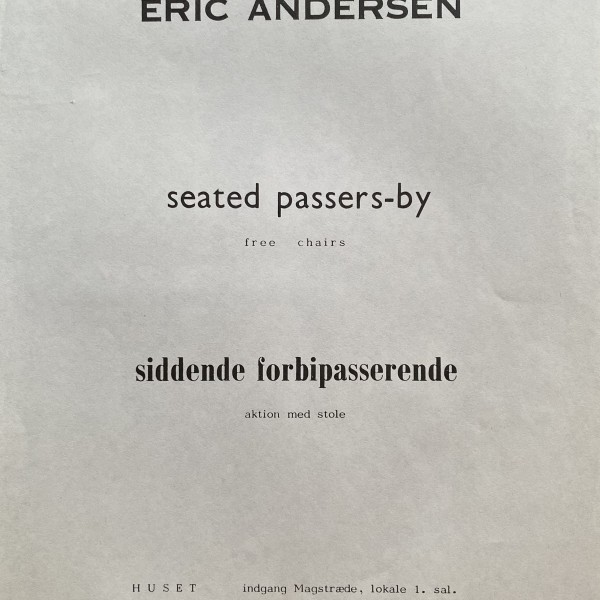 Eric Andersen. seated passers-by / three chairs // saddened forbipasserende / action med stole. Huset, [Copenhagen], 29 januar 1977