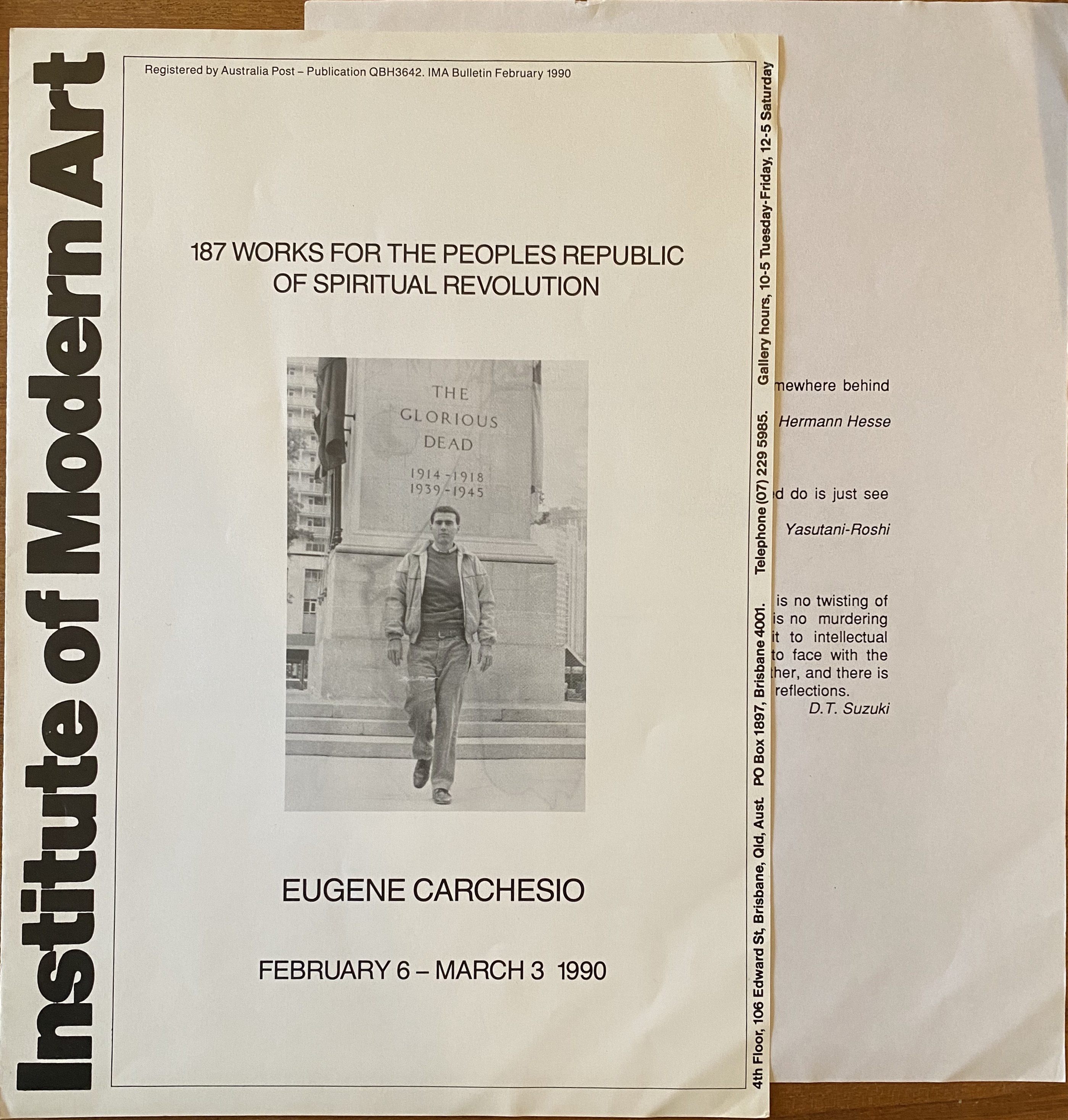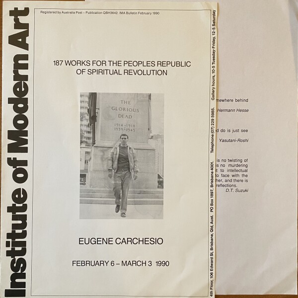 Eugene Carchesio. 187 Works or the Peoples Republic of Spiritual Revolution. Institute of Modern Art, Brisbane, Queensland, February 6 – March 3, 1990