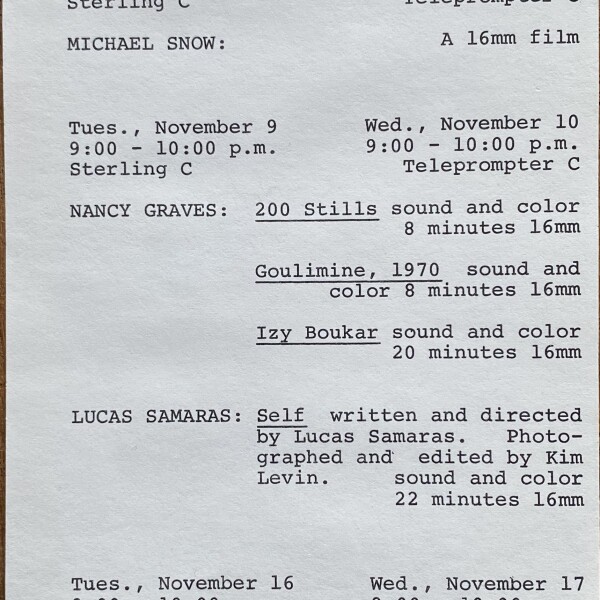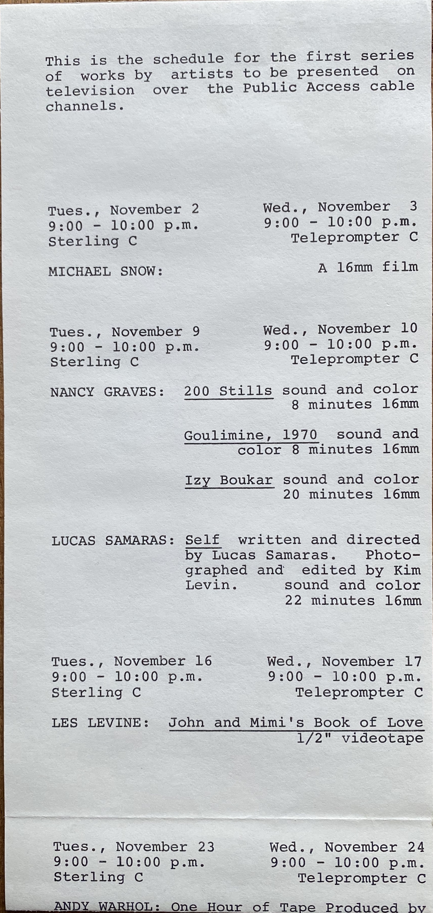 “This is the schedule for the first series of works by artists to be presented on television over the Public Access cable channels”