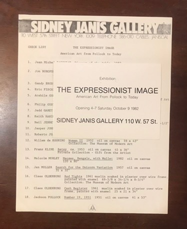 The Expressionist Image: American Art from Pollock to Today. Sidney Janis Gallery, New York, 1982