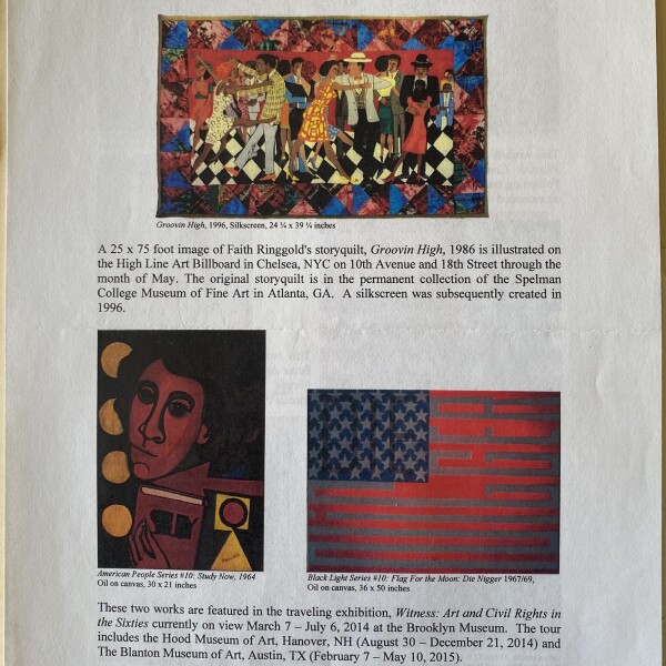 (Faith Ringgold). Faith Ringgold News. ACA Galleries, New York, 2014