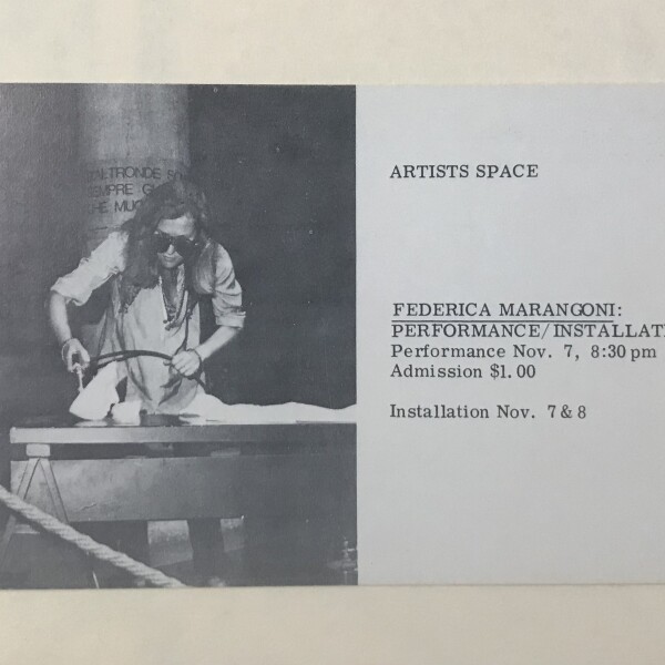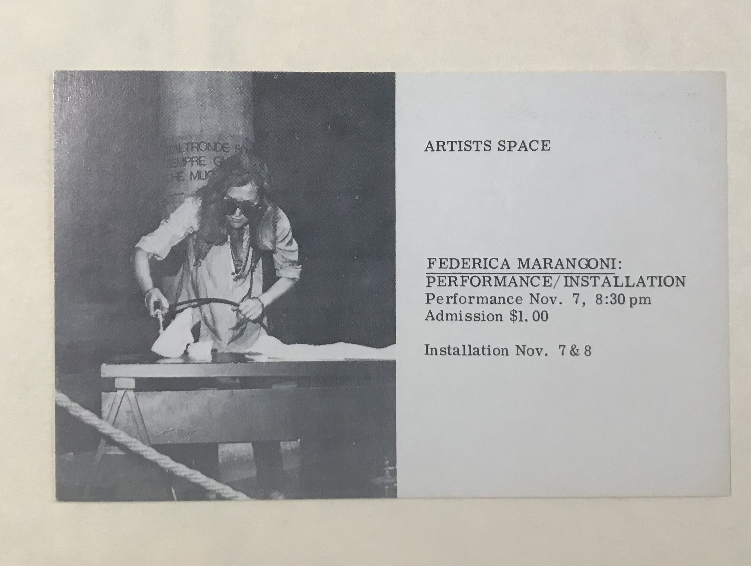 Federica Marangoni. Performance/Installation, Artists Space, New York. Performance: November 7, [1978]. Installation: November 1978