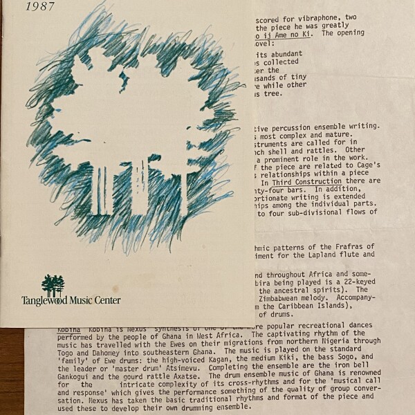 Program Notes, July 30, 1987. 1 page. 13 15/16 x 8 1/2” / 35.4 x 21.5cm
