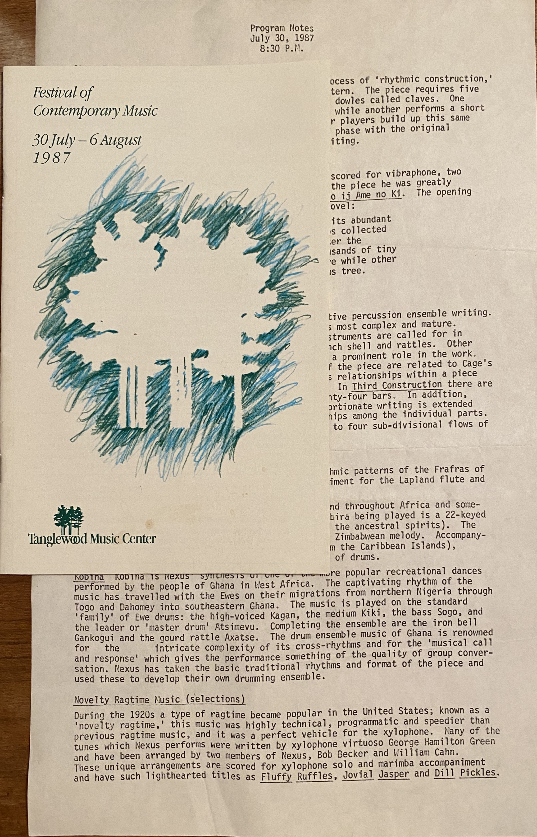 Festival of Contemporary Music. Tanglewood Music Center, Tanglewood, Massachusetts, 30 July – 6 August 1987