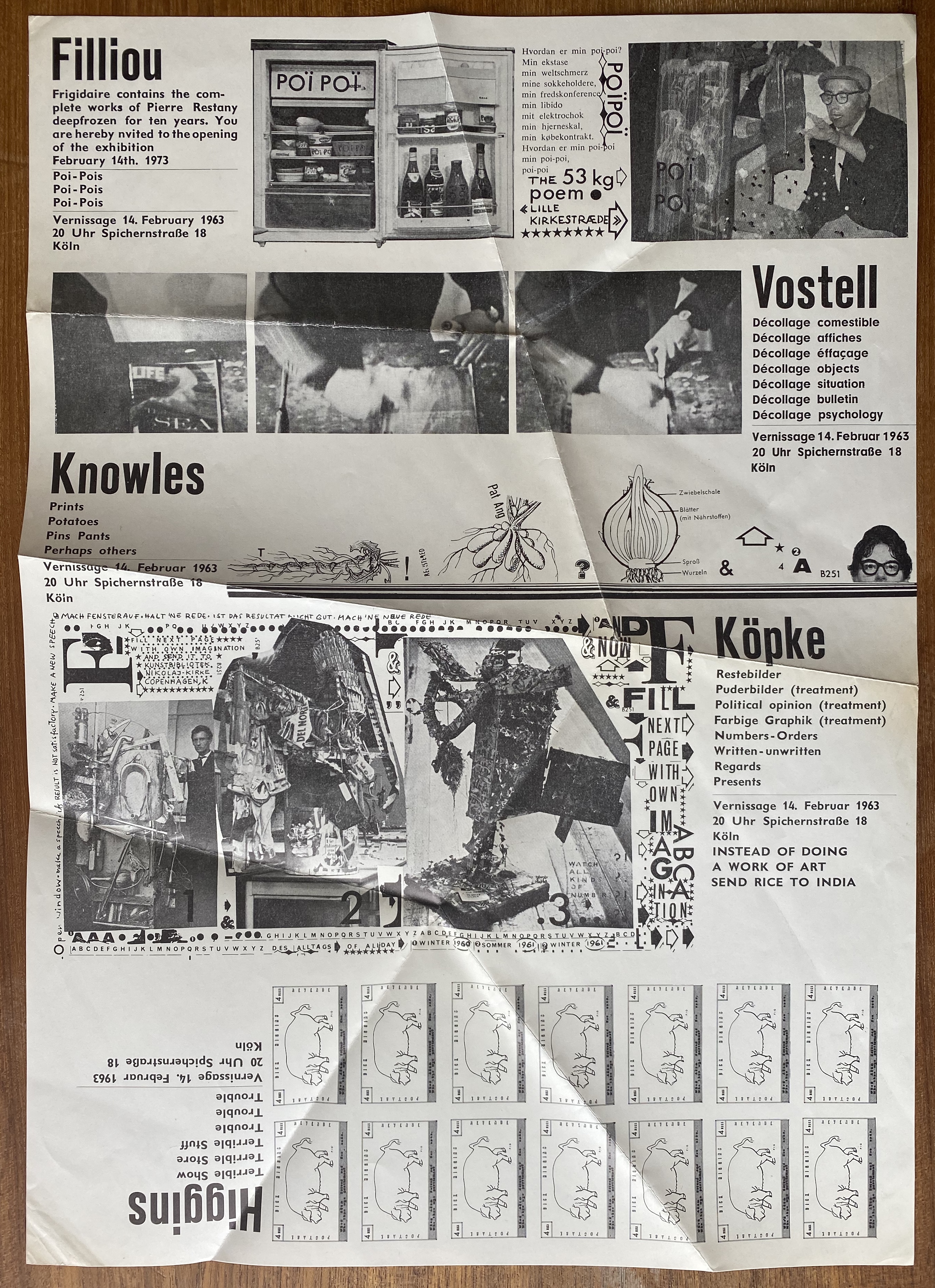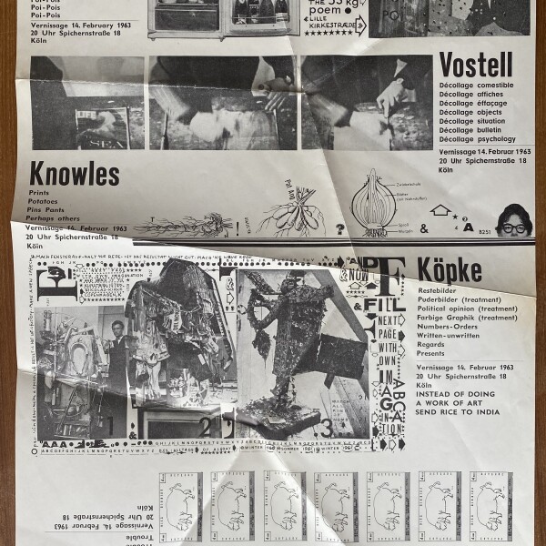 Filliou, Knowles, Vostell, Higgins, Köpke. Spichernstrasse 18, Köln. Vernissage 14. Februar 1963