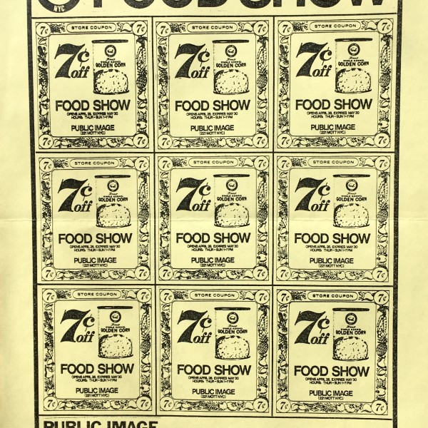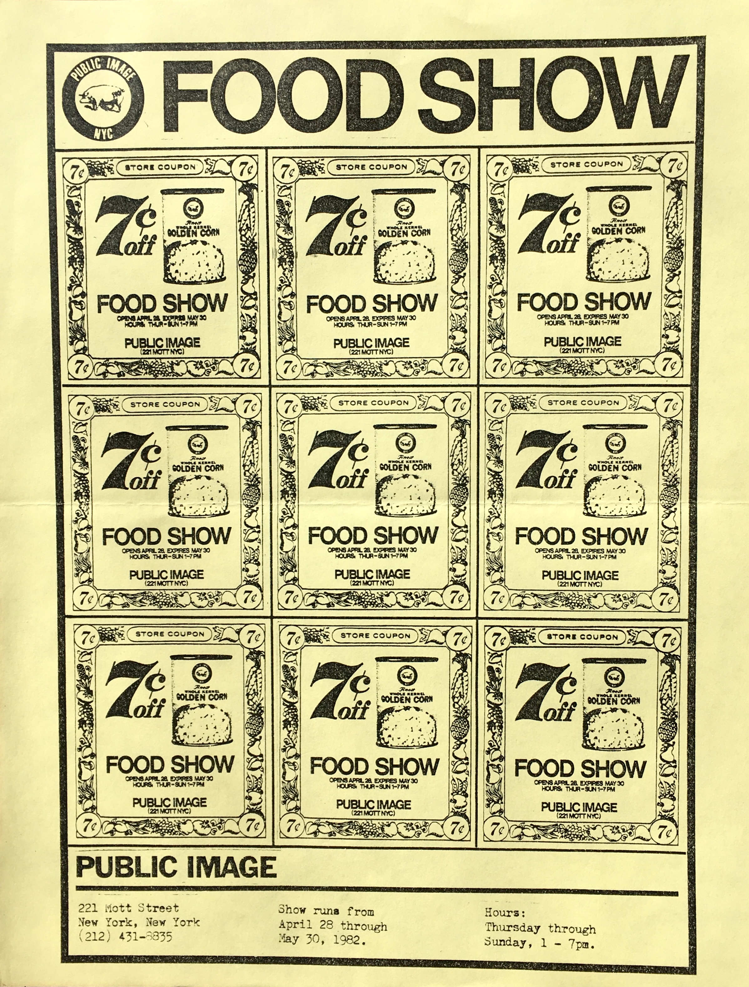 Food Show. Public Image, New York, April 28 – May 30, 1982