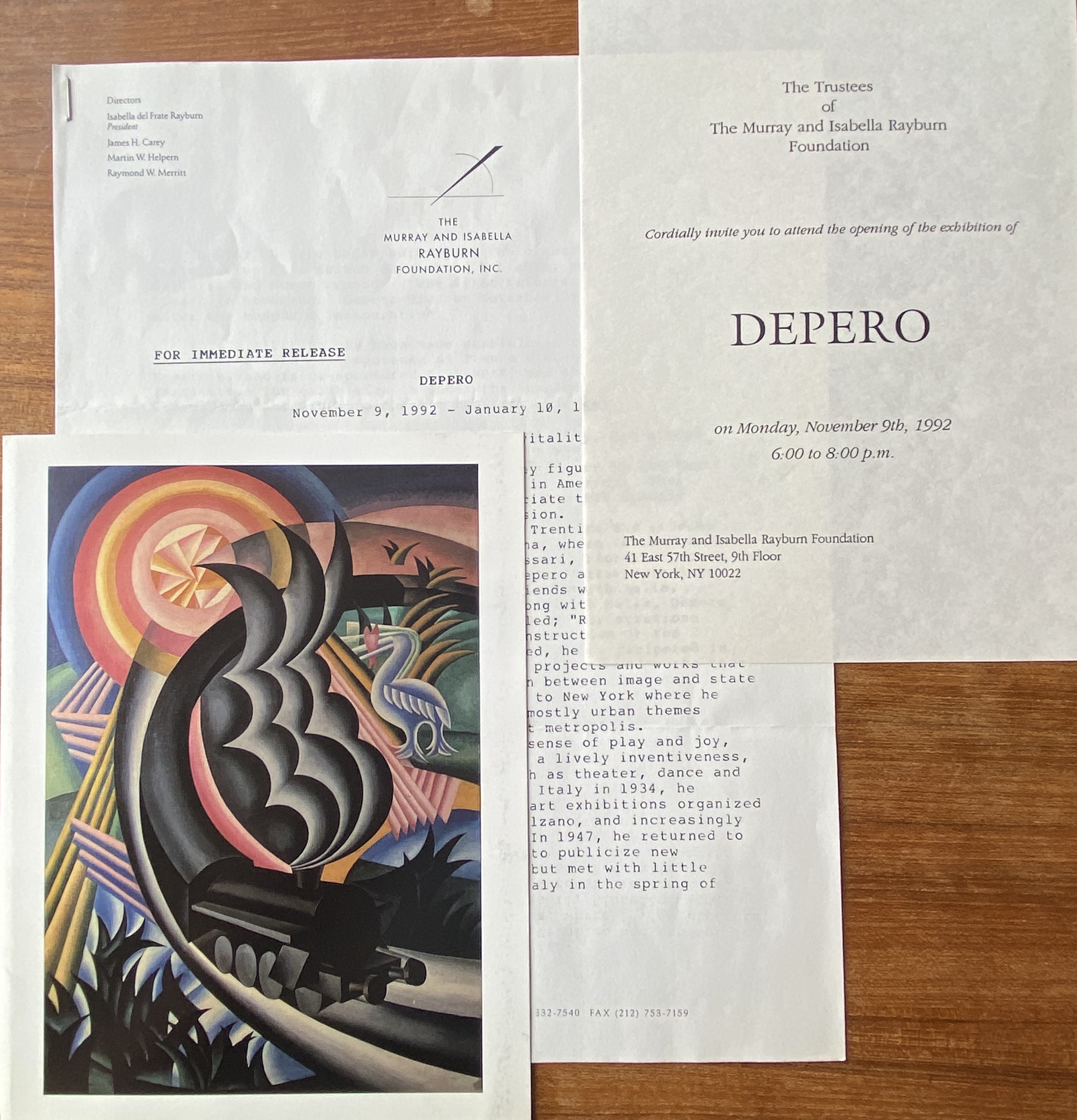 (Fortunato Depero). Depero. The Murray and Isabella Rayburn Foundation, New York, November 10, 1992 – January 10, 1993