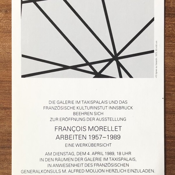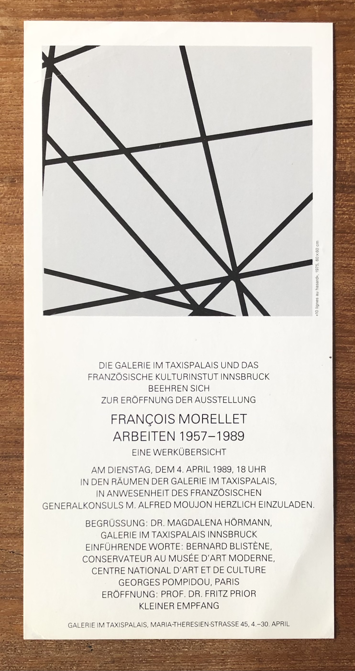 François Morellet. Arbeiten 1957 – 1989. Galerie Im Taxispalais, Innsbruck, 4. April 1989