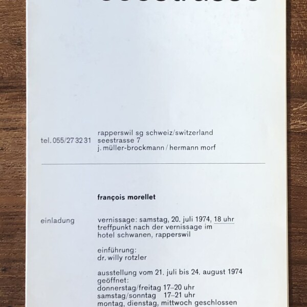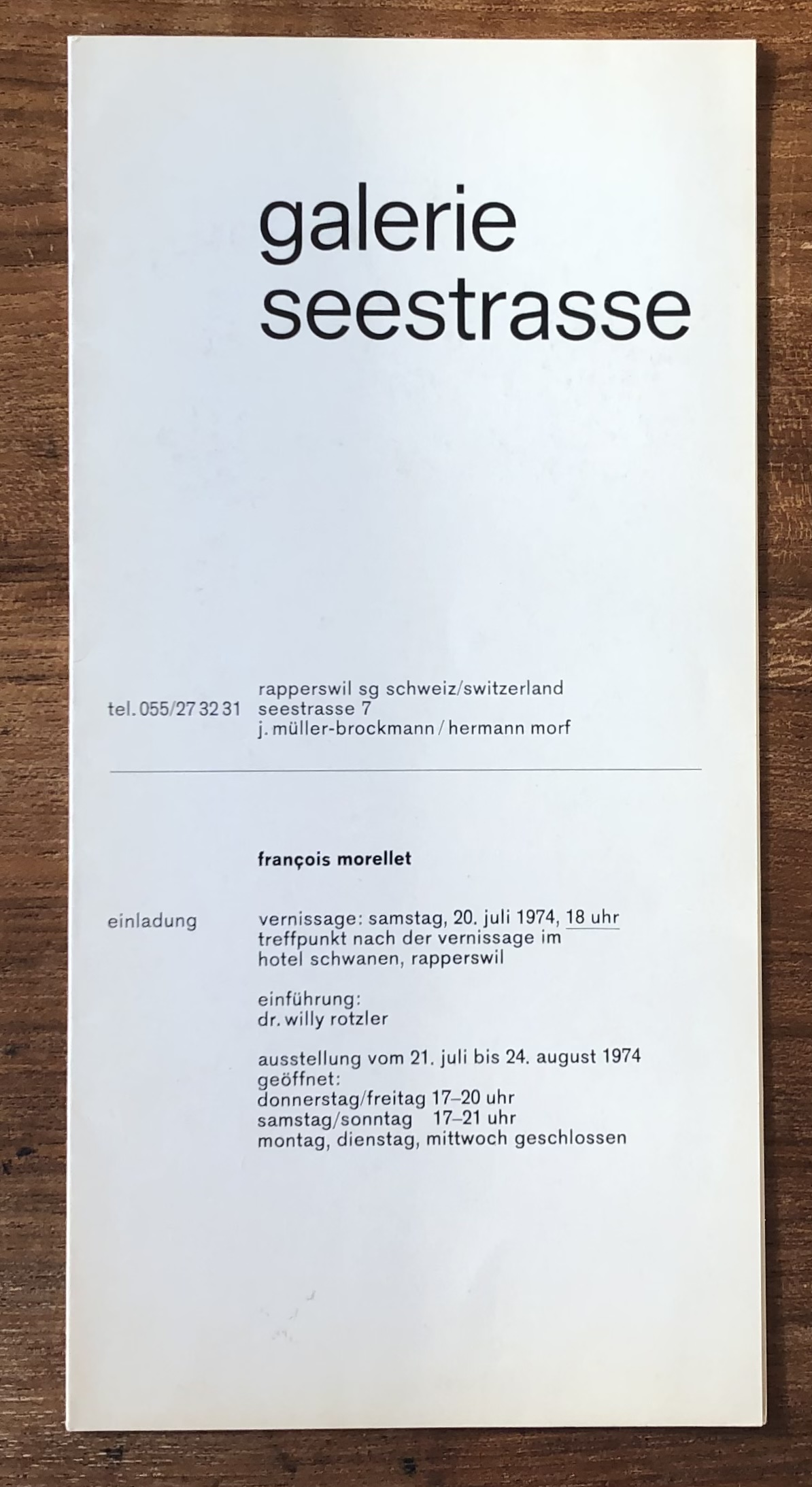 (François Morellet). François Morellet. Galerie Seestrasse, Rapperswil, St. Gallen, 20., 21. Juli – 24. August 1974