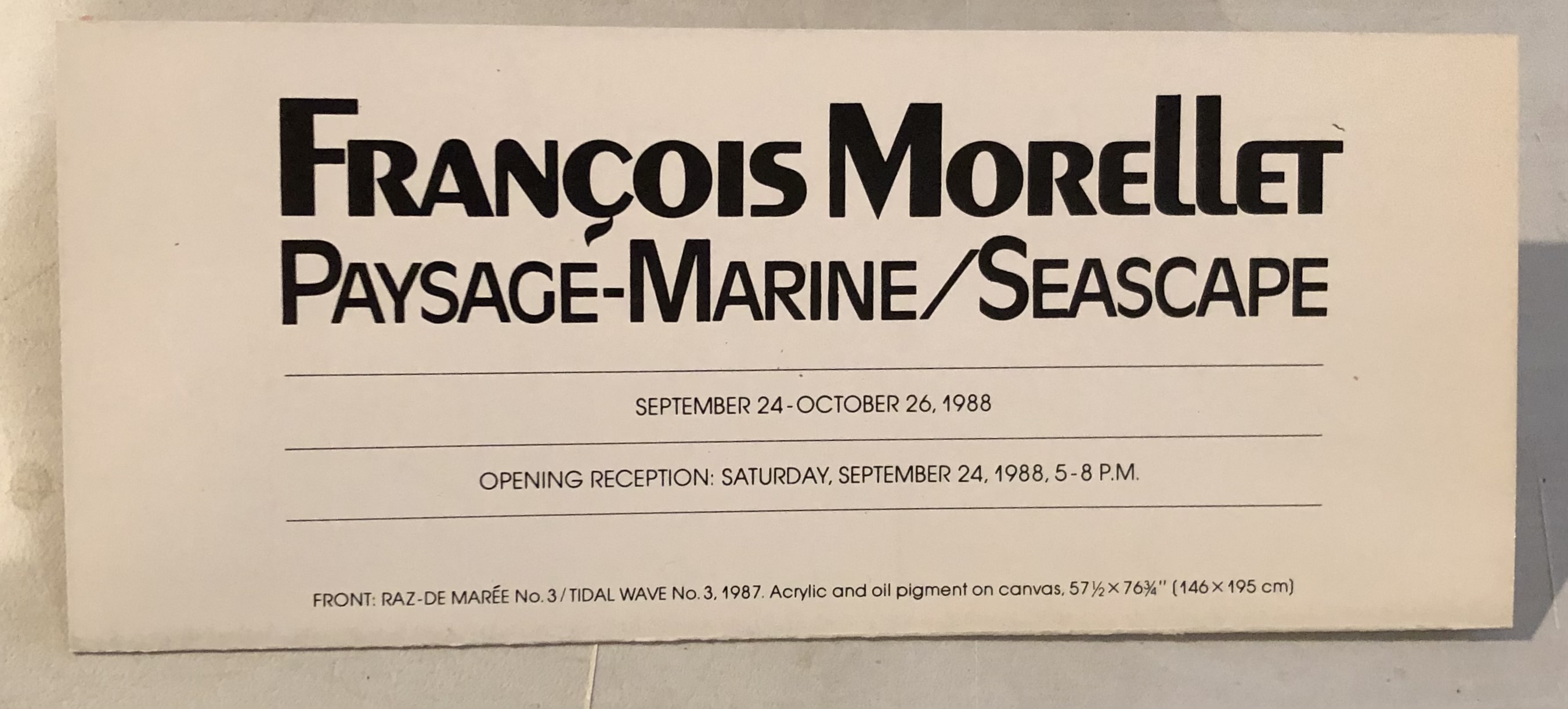 François Morellet. Paysage–Marine / Seascape. Facchetti Gallery, New York, September 24 – October 26, 1988