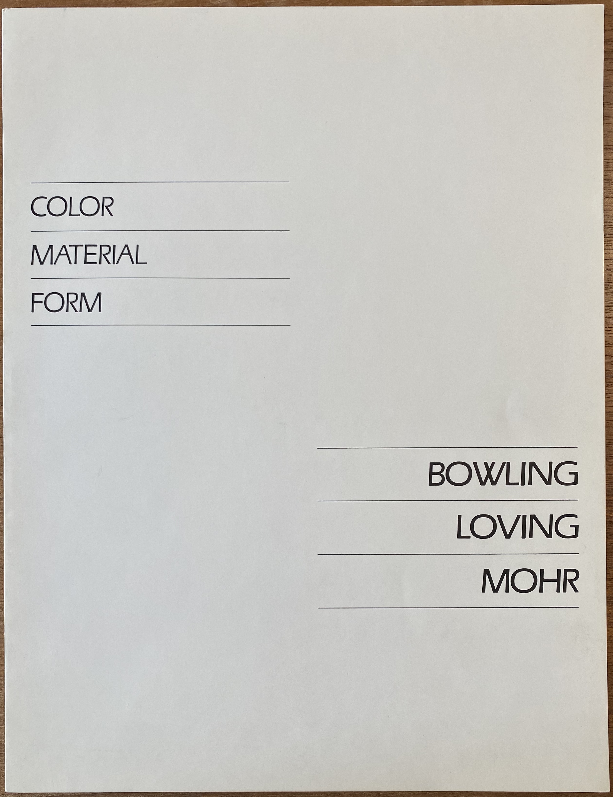 (Frank Bowling, Alvin Bowling, Larry Mohr). Color, Material, Form. The Currier Gallery of Art, Manchester, New Hampshire, January 9 – February 14, 1982