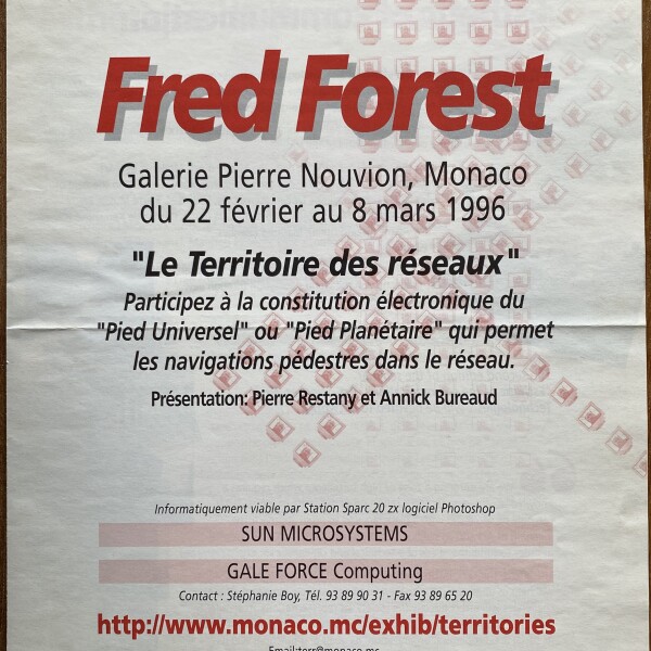 Fred Forest. “Le Territoire des réseaux.” Galerie Pierre Nouvion, Monaco, 22 février – 8 mars 1996