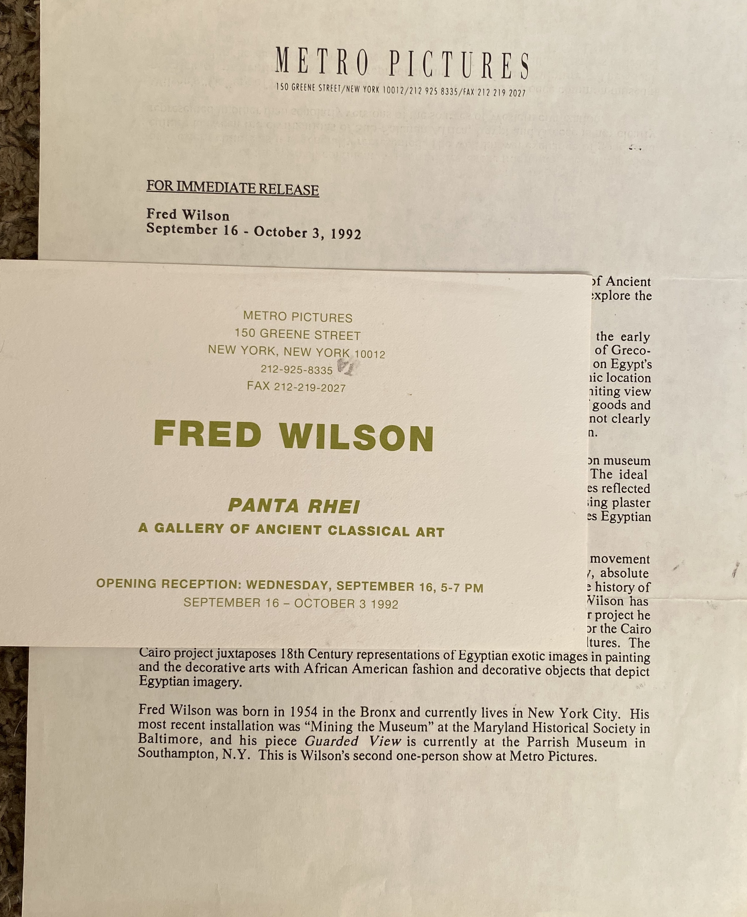 Fred Wilson. Panta Rei. A Gallery of Ancient Classical Art. Metro Pictures, New York, September 16 – October 3, 1992