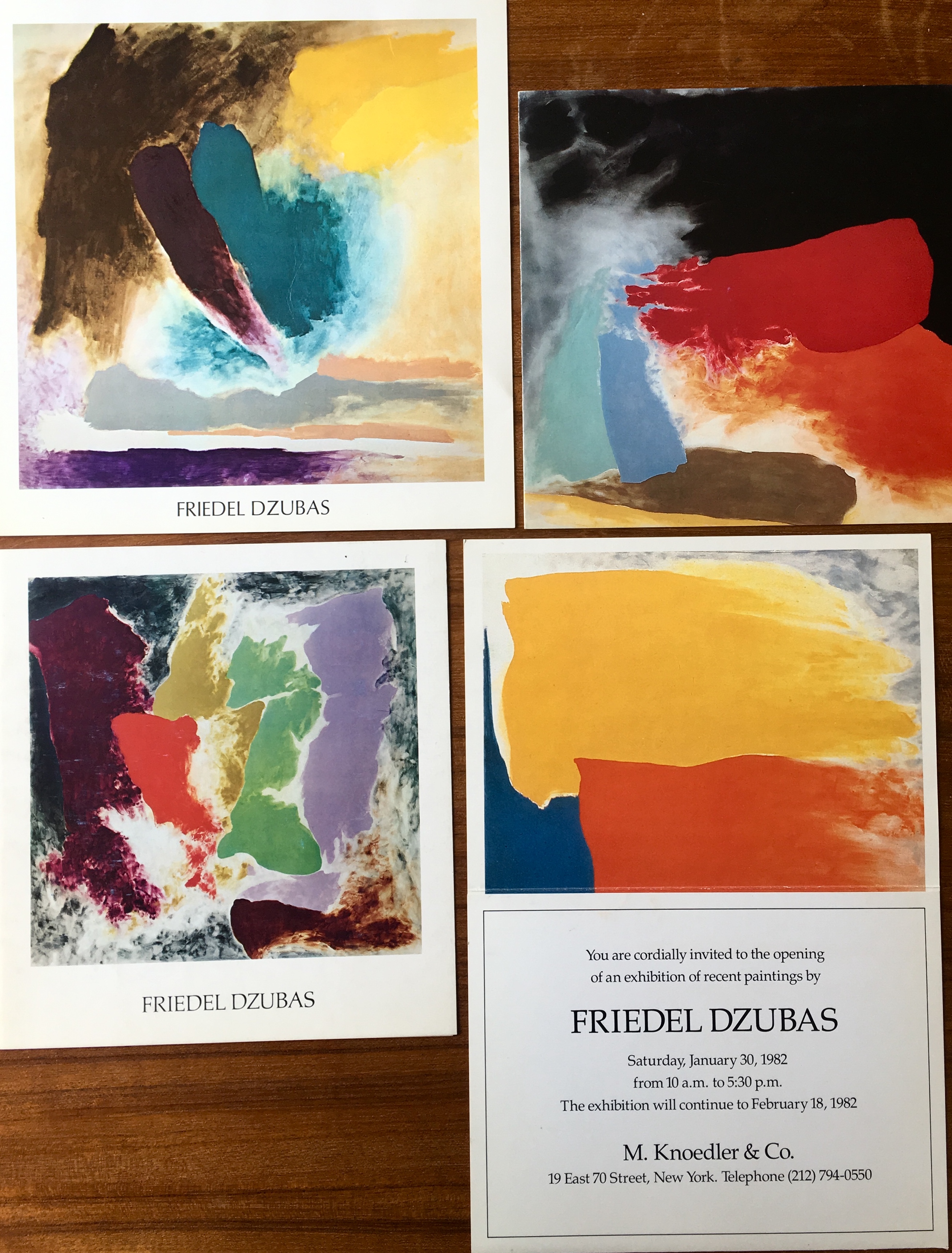 Friedel Dzubas. 7 illustrated exhibition invitations, Knoedler, New York, 1976 – 1984