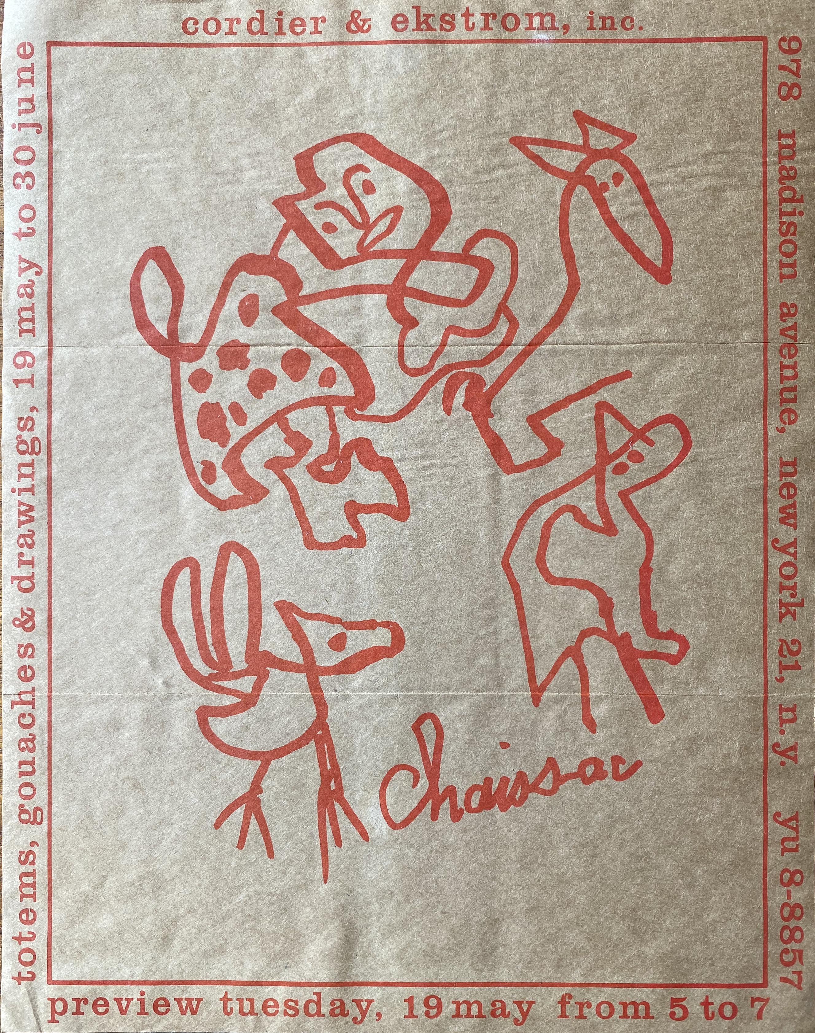 (Gaston Chaissac). Chaissac. Totems, Gouaches & Drawings Cordier & Ekstrom, Inc., New York, 19 May – 30 June [1964]