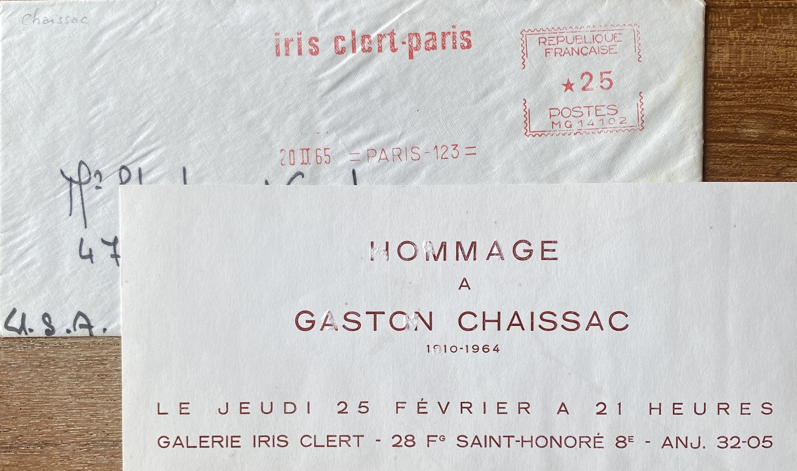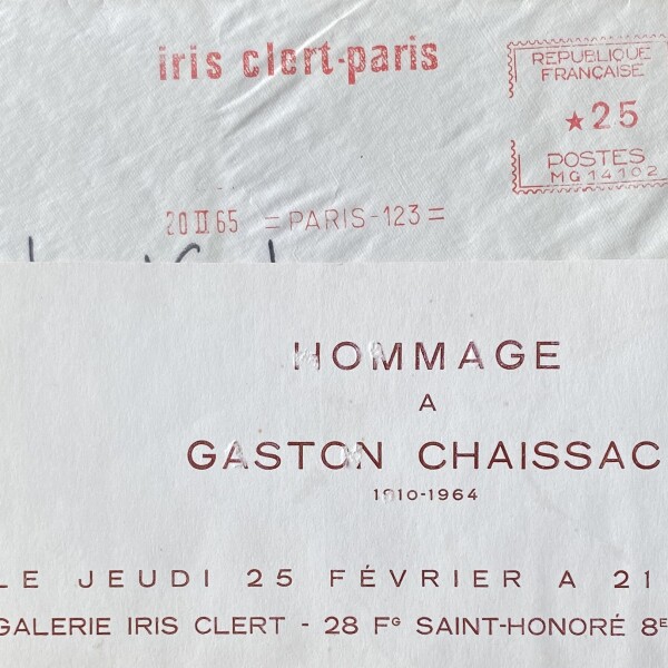 (Gaston Chaissac). Hommage à Gaston Chaissac. Galerie Iris Clert, [Paris], 25 février [1965]