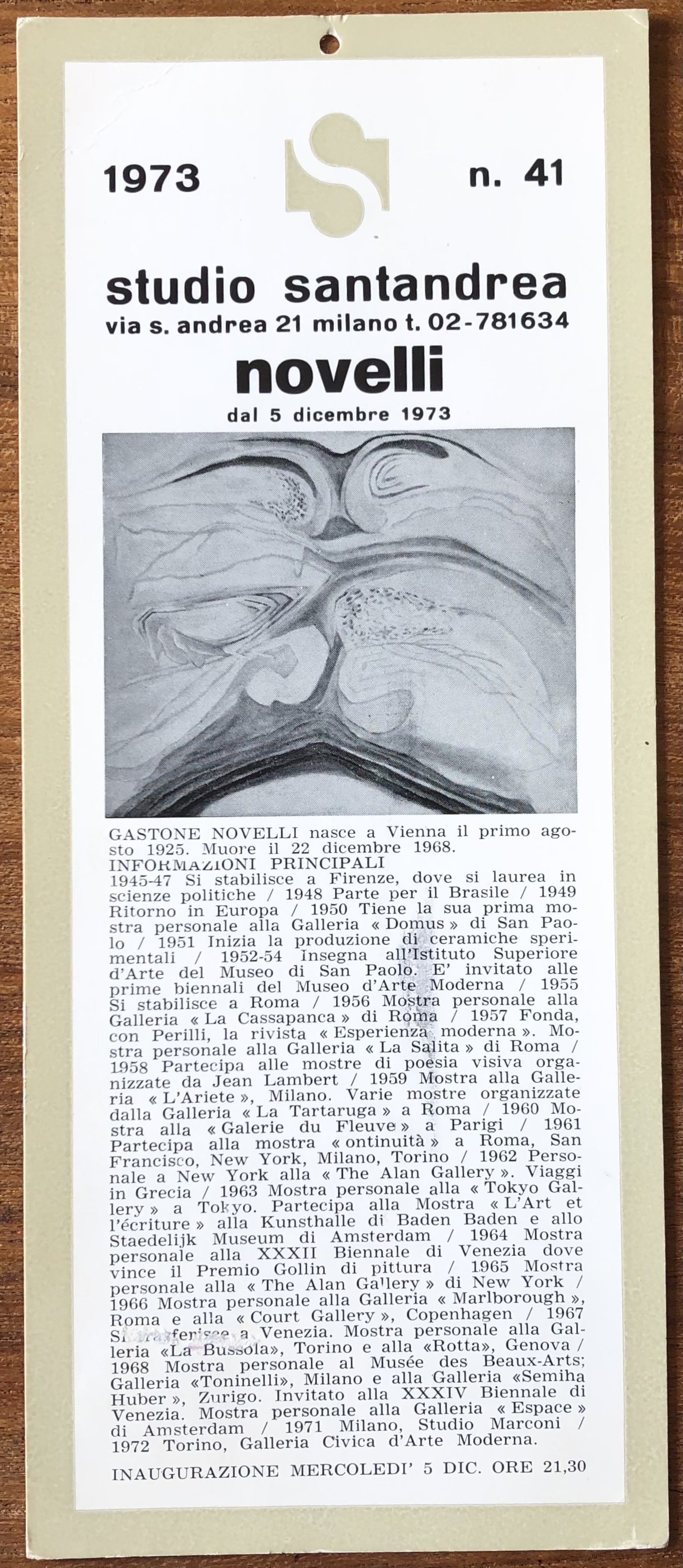 (Gastone Novelli). Novelli. Studio Santandrea, Milano, dal 5 dicembre, 1973. (N. 41)