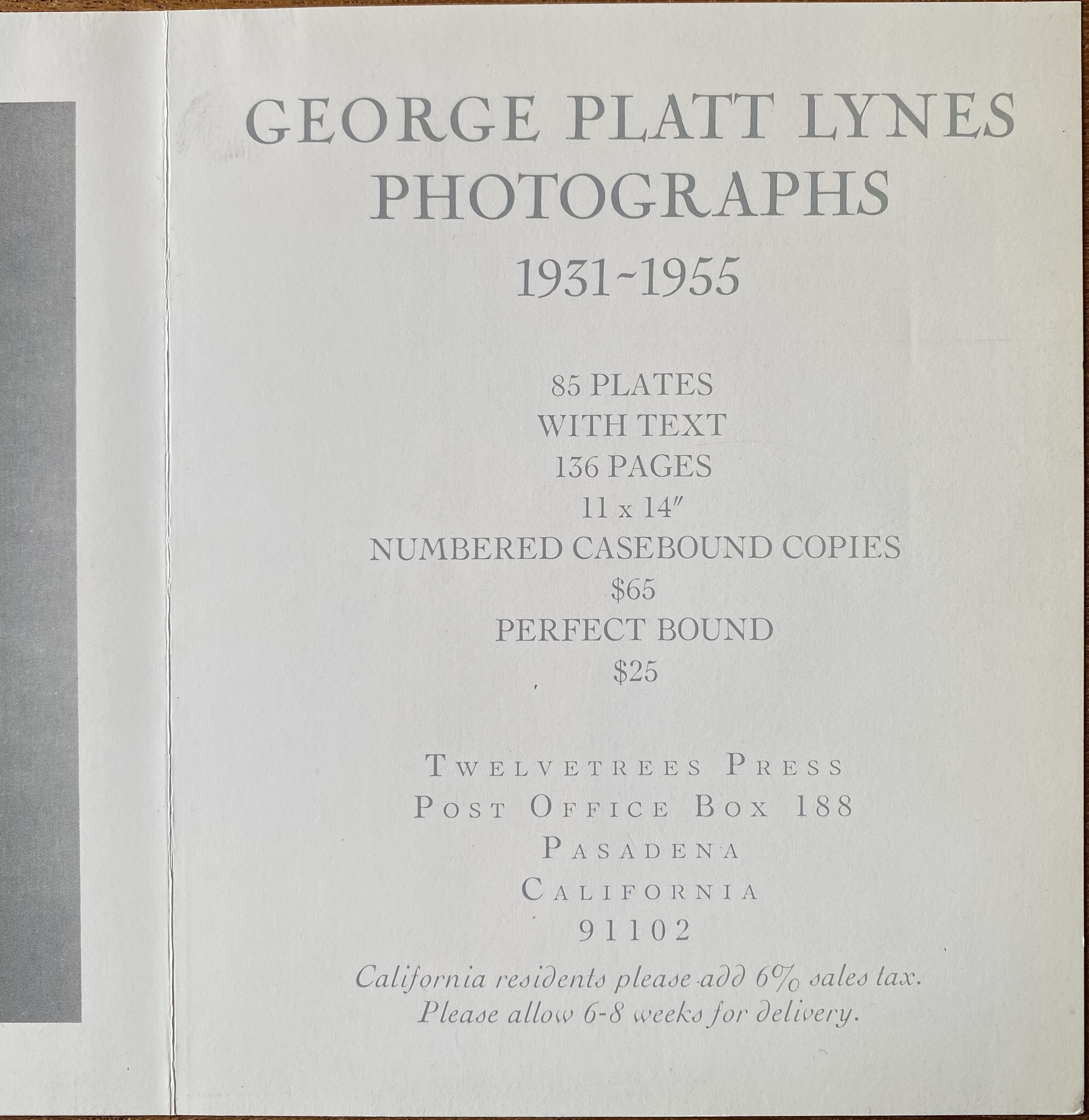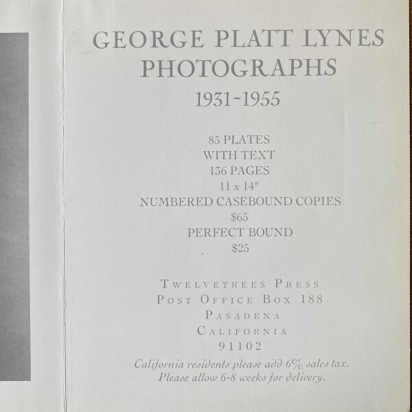 George Platt Lynes. Photographs 1931-1955. Twelvetrees Press, Pasadena, California [1981]