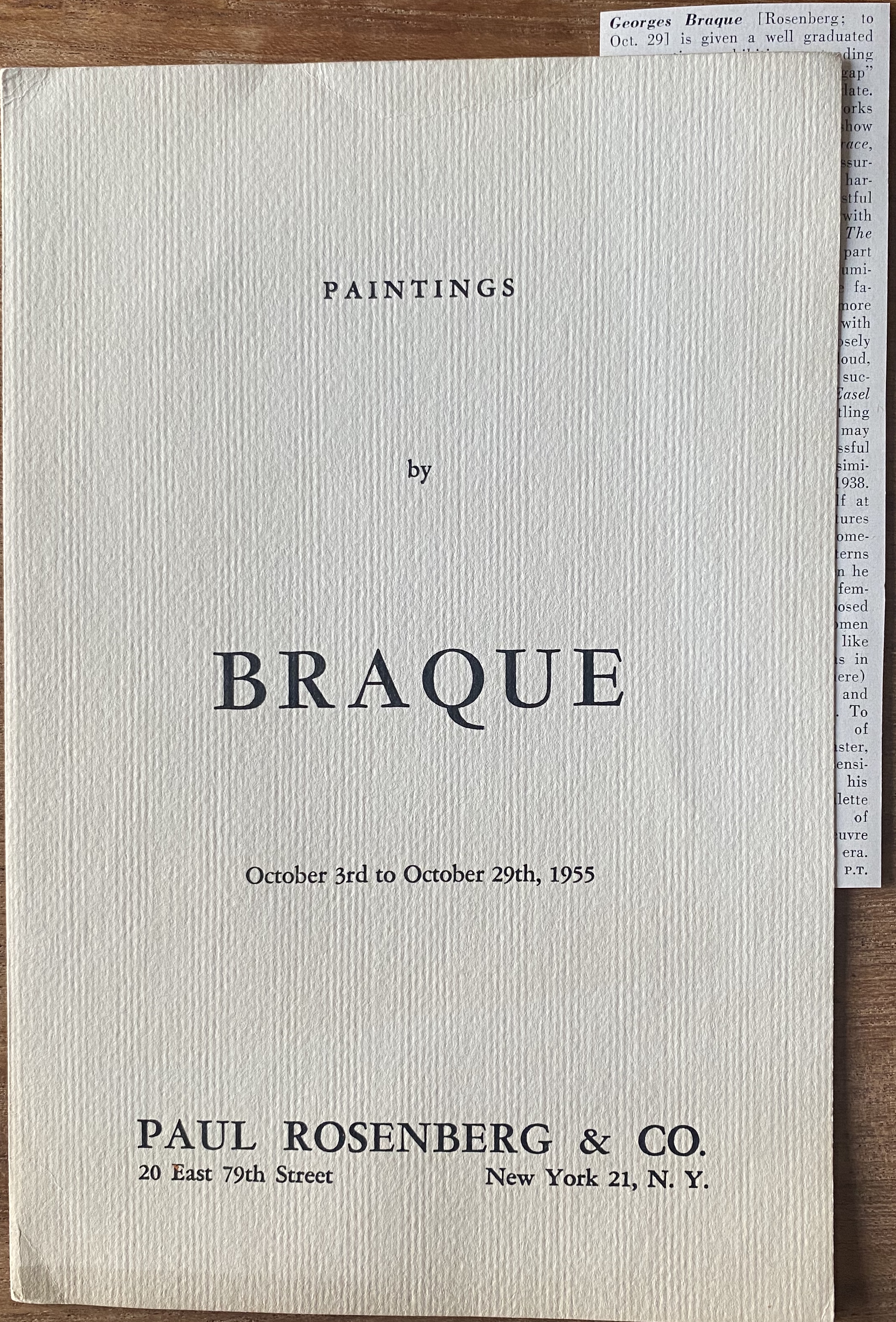 (Georges Braque). Paintings by Braque. Paul Rosenberg & Co., New York, October 3-29, 1955