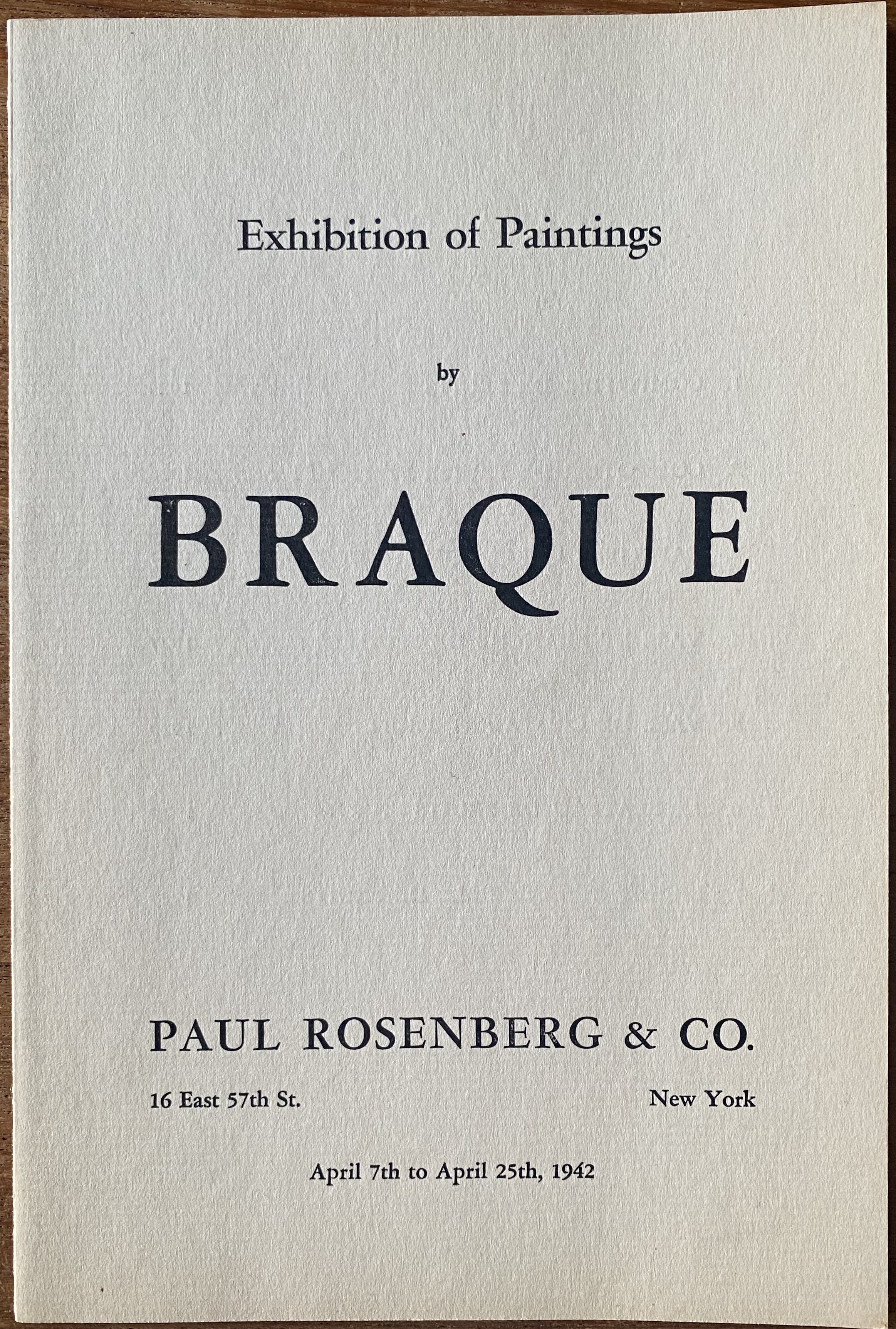 (Georges Braque). Exhibitons of Paintings by Braque. Paul Rosenberg & Co., New York, April 7-25, 1942