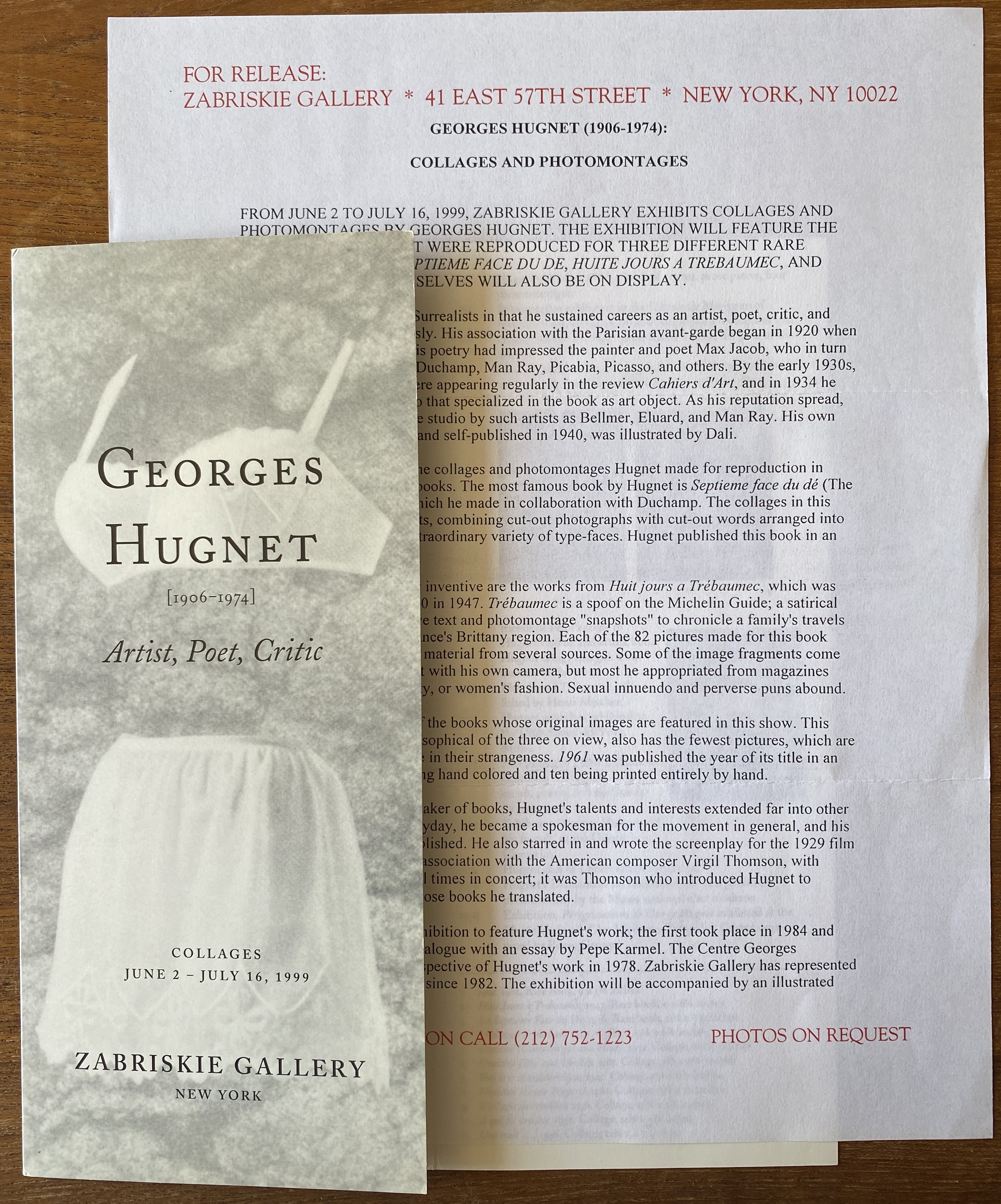 (Georges Hugnet). Georges Hugnet. Zabriskie Gallery, New York, June 2 – July 16, 1999