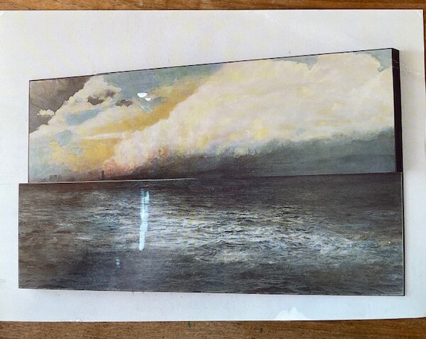 crease in upper right corner of image side. Rubbing (caused in mailing) in 2 areas of image side