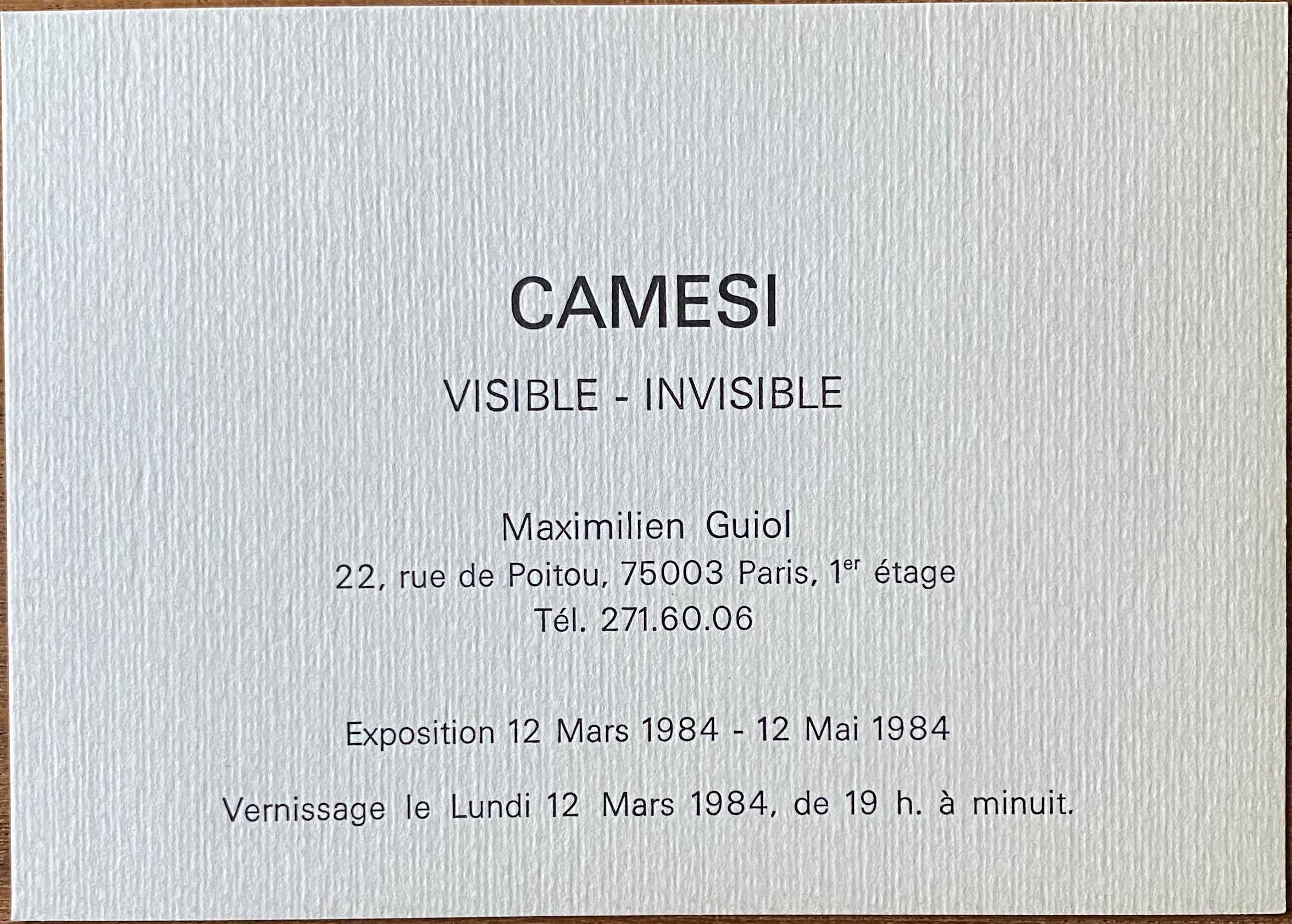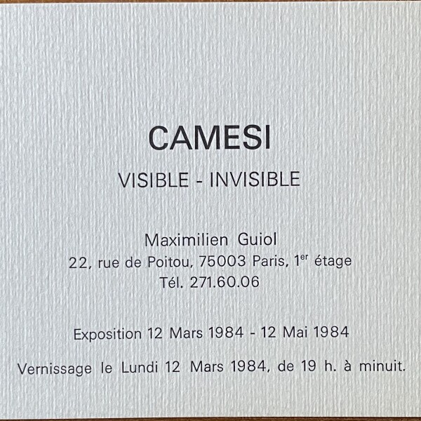 (Gianfredo Camesi). Camesi. Visible-Invisible. Maximilien Guiol, Paris, 12 mars – 12 mai 1984