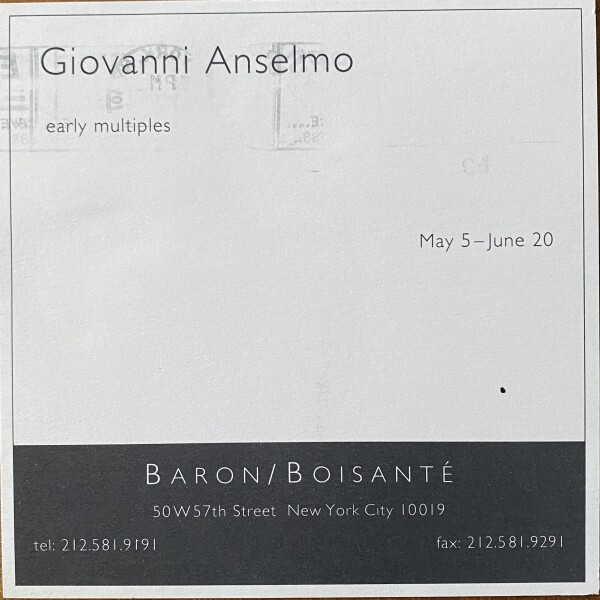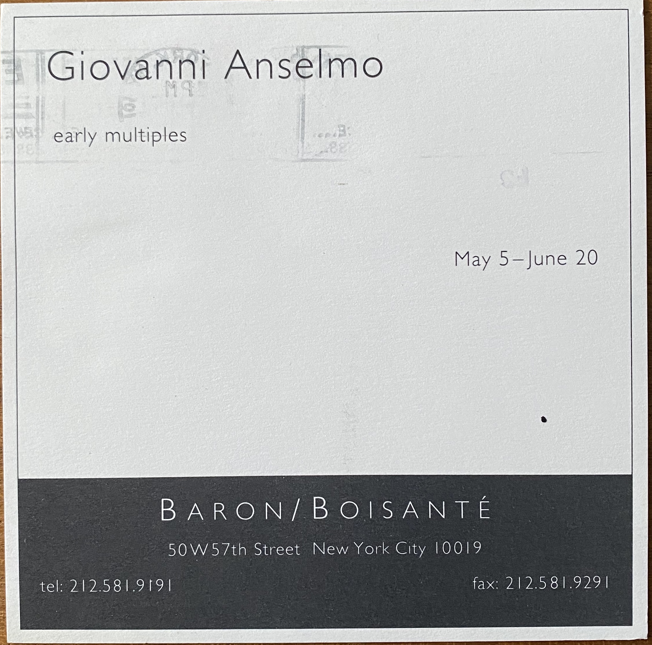 Giovanni Anselmo. Early multiples. Baron/Boisanté, New York, May 5 – June 20, [1992]