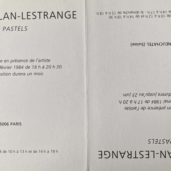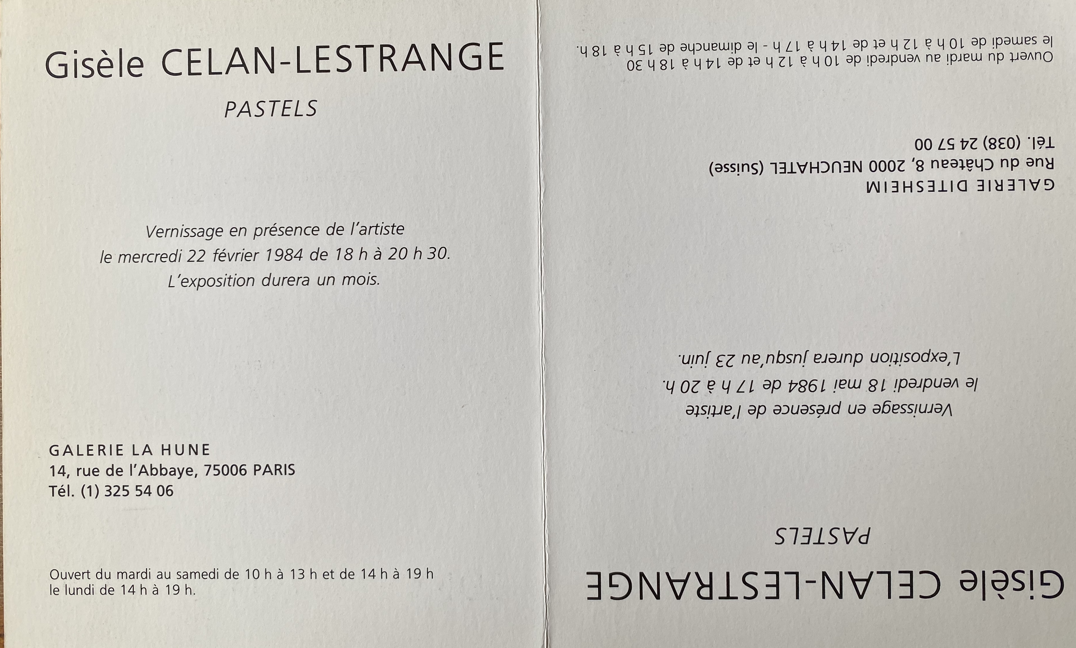 Gisèle Celan-Lestrange. Pastels. Galerie La Hune, Paris, 22 février 1984. L’exposition durera un mois // Gisèle Celan-Lestrange. Pastels. Galerie Ditesheim, Neuchâtel, 18 mai – 23 juin 1984