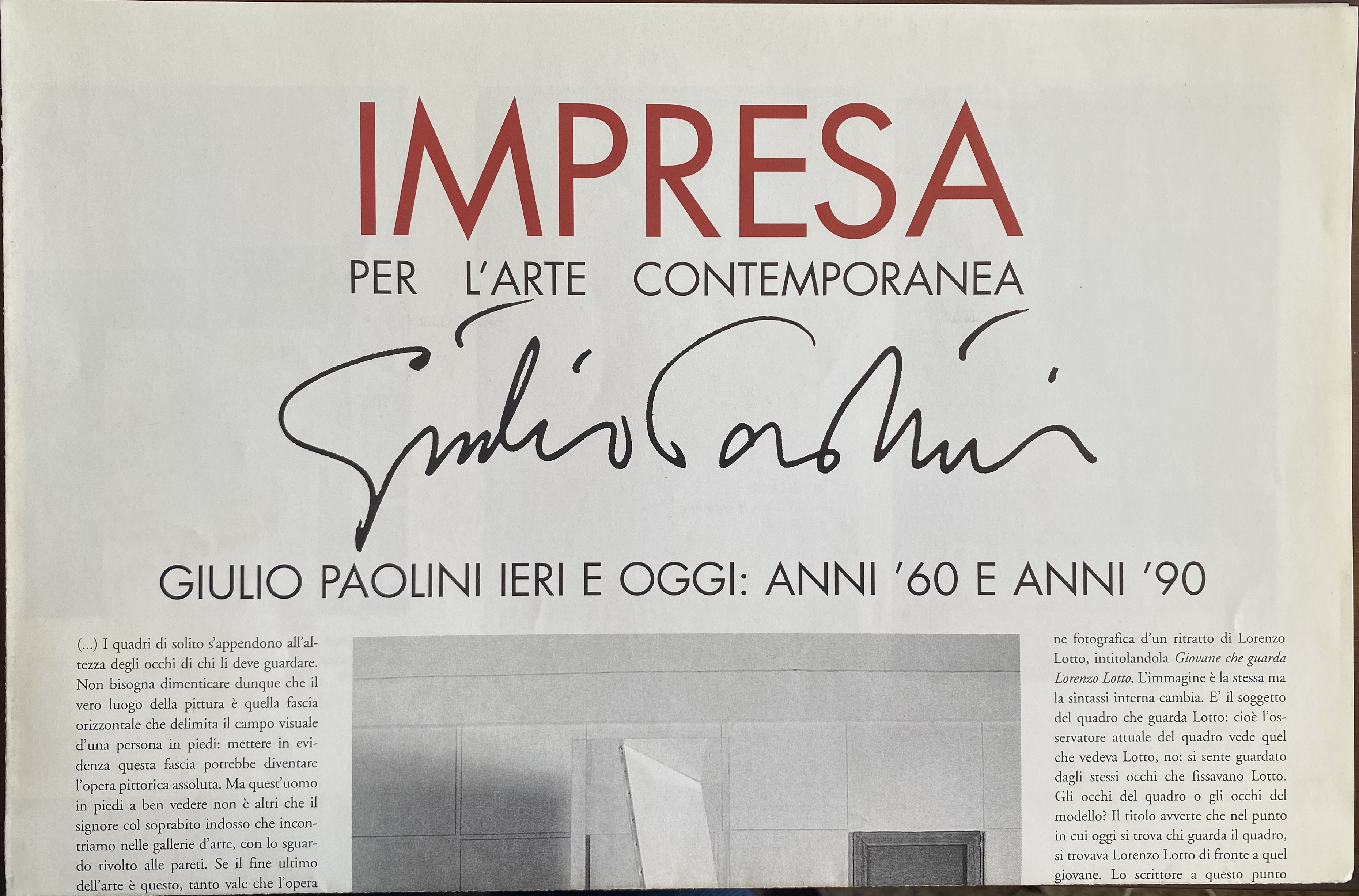 (Giulio Paolini). Giulio Paolini ieri e oggi: anni ’60 e anni ’90. Impresa per l’arte contemporanea. Number 2, ottobre 1996